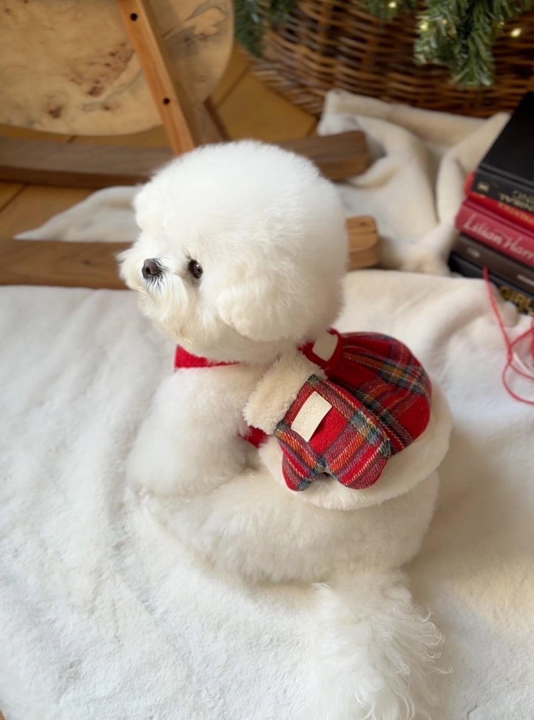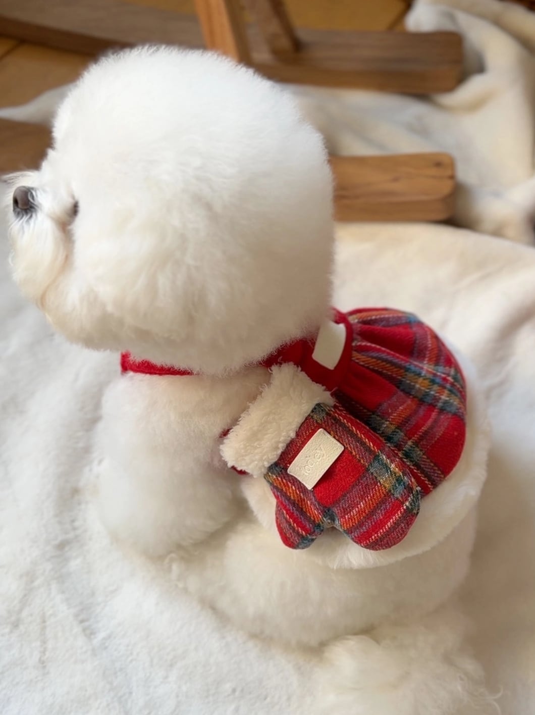 華やかなレッドチェックの生地とダンブルの生地を一緒にマッチして