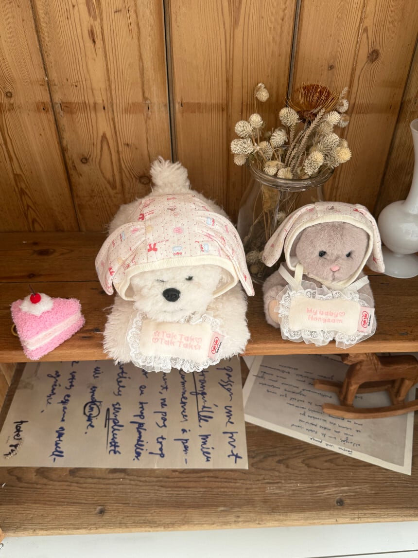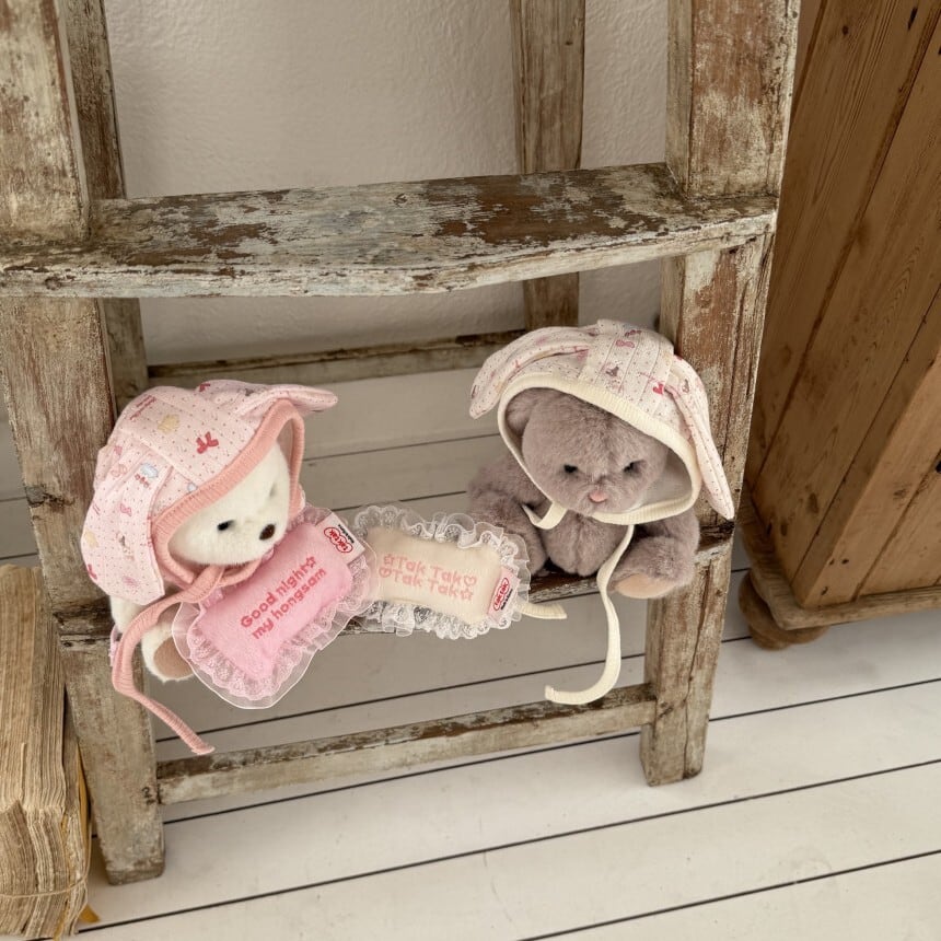 【予約】[tak!tak!tak!tak!] Milk Pink Eyelet Series _Bunny Bonnet(2color)