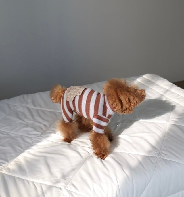 - 後ろ脚の付け根部分をスナップ留めにすることで、着心地も快適です。