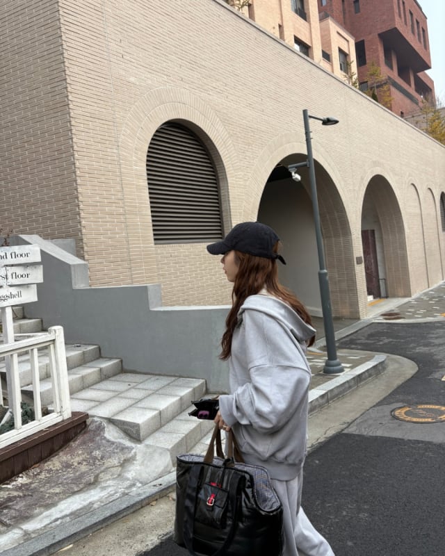 バッグ自体が柔らかく丸みを帯びているので、顎を乗せやすいんです :)