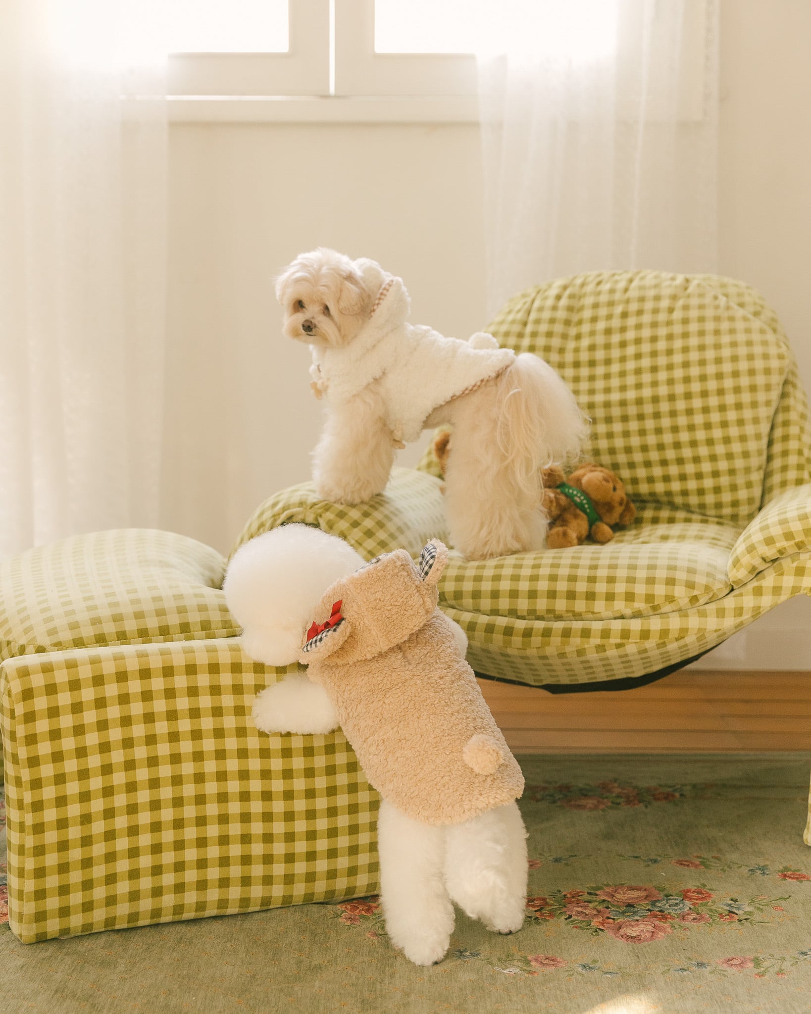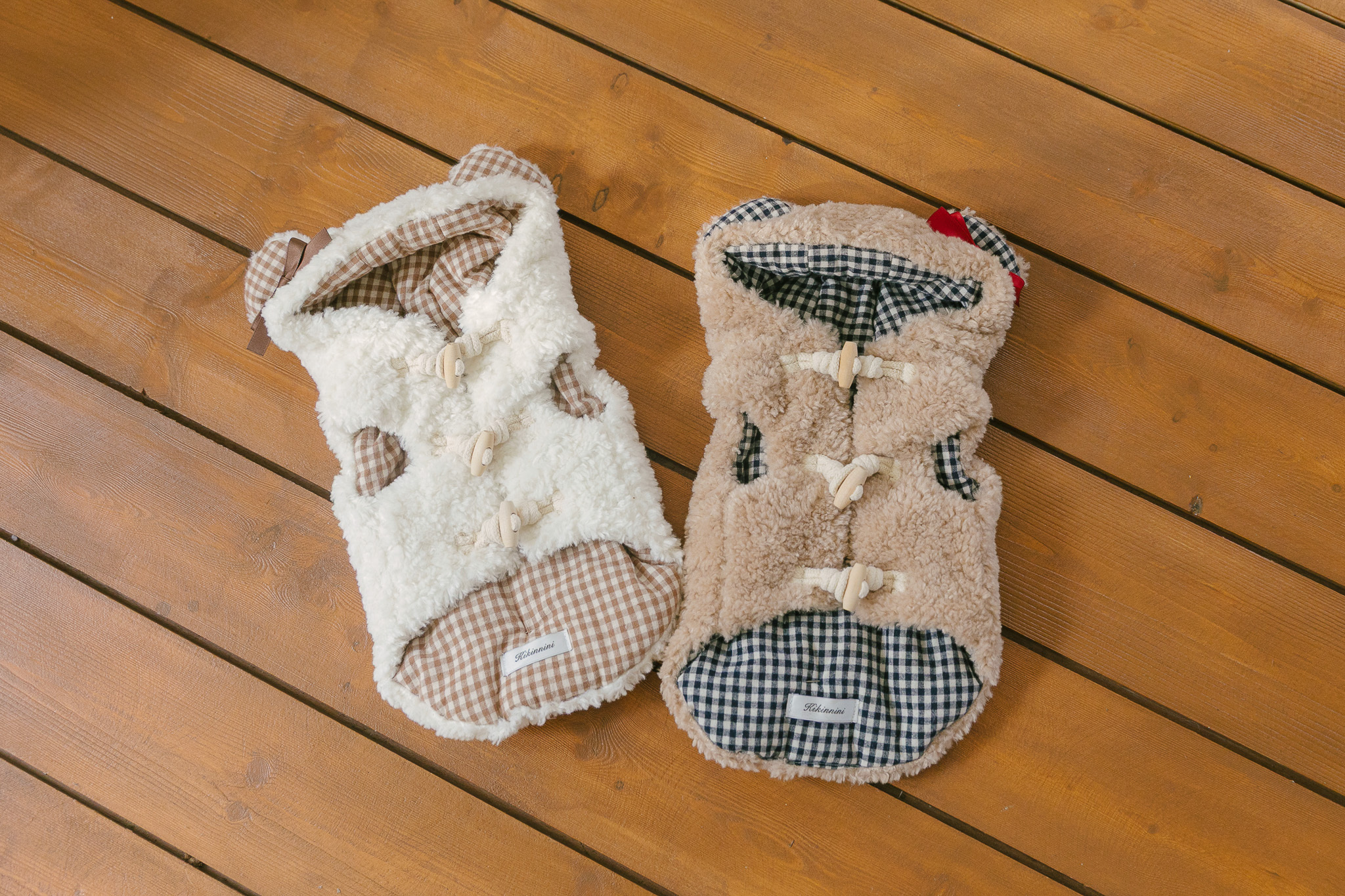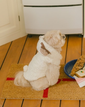 冬のお散歩時にハーネスの上からでも簡単に装着できます。