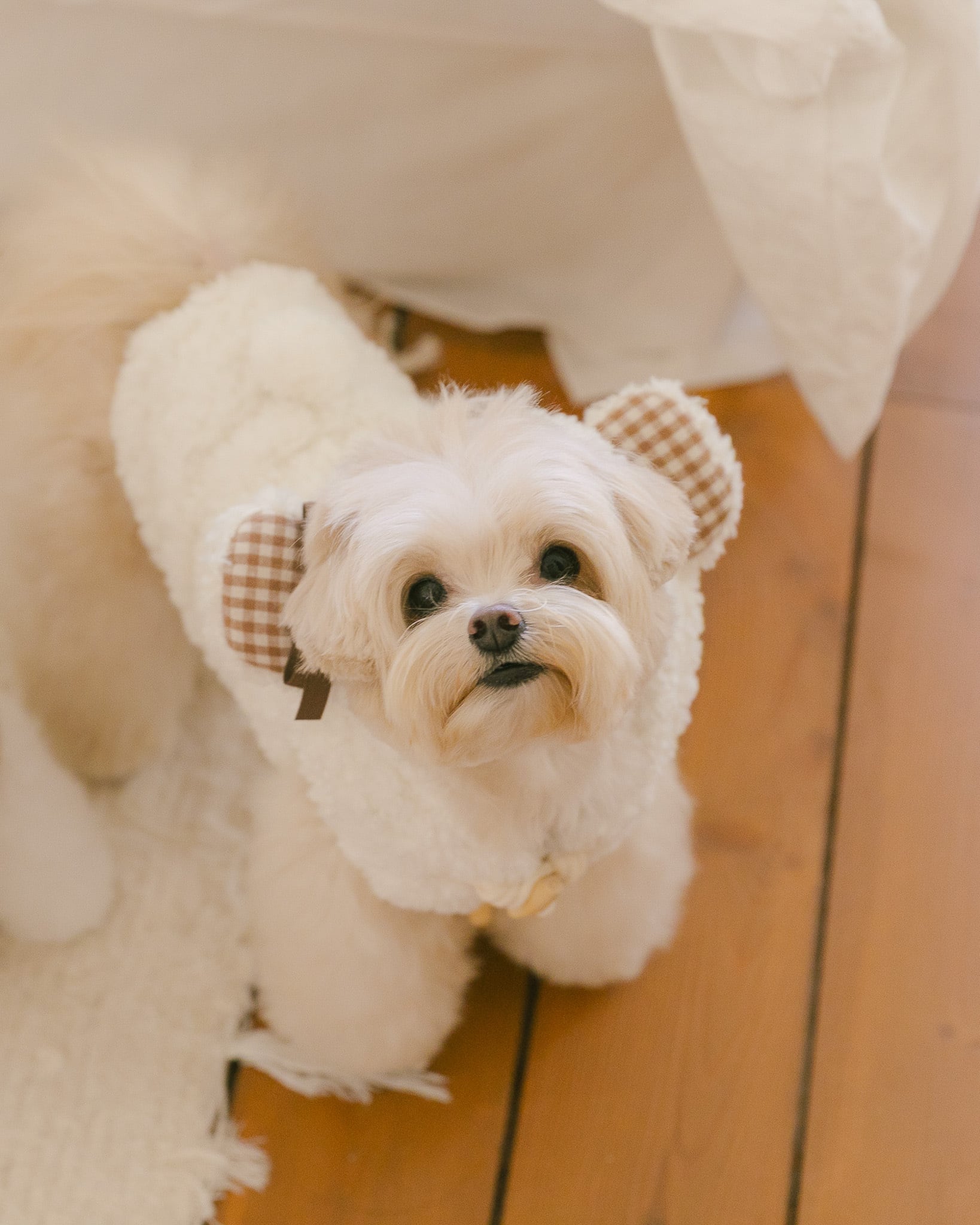 フードにあしらったクマの耳モチーフは