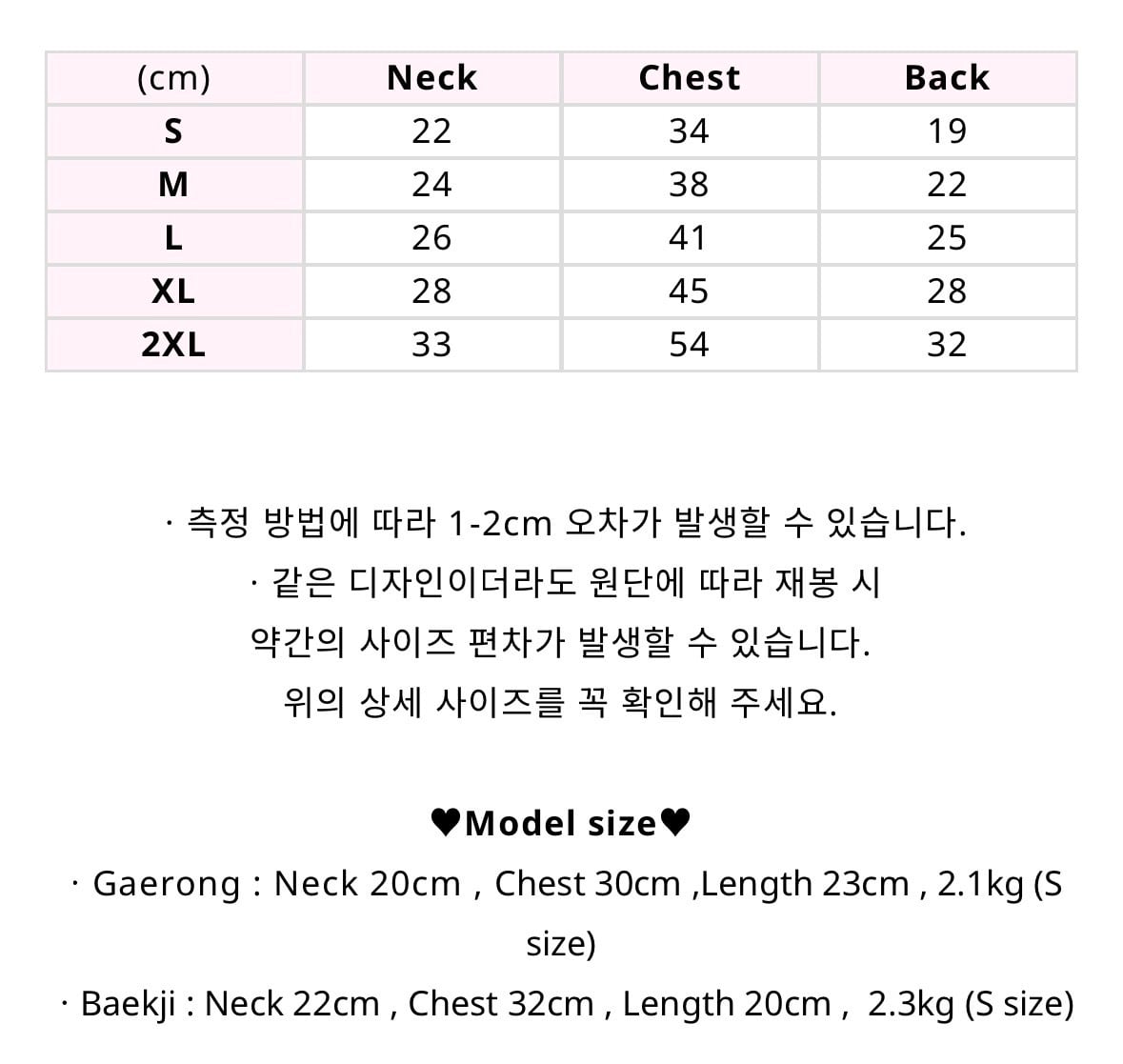 ・Baekji : Neck 22cm , Chest 32cm , Length 20cm , 2.3kg (S size)