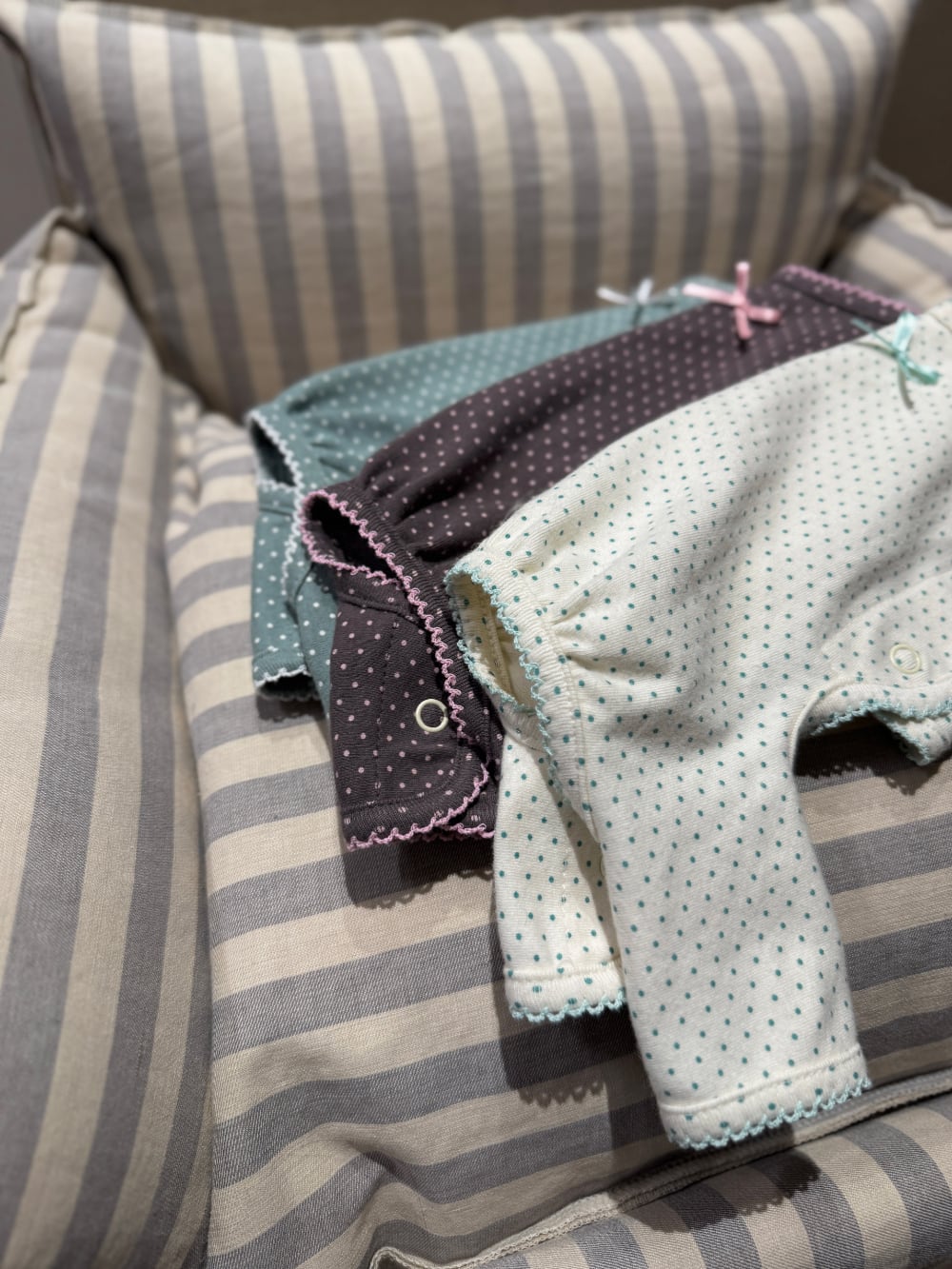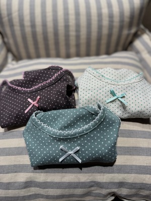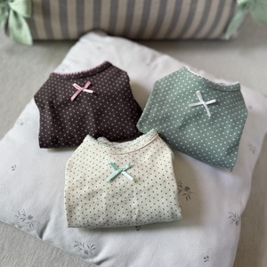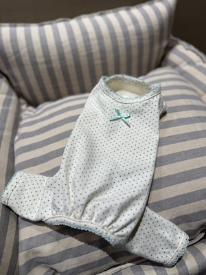 【予約】[ SICGGU ]ivory / Cotton Dot Ribbon Snap All-in-One