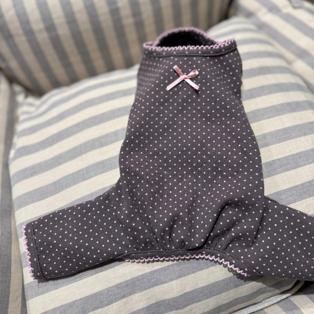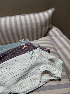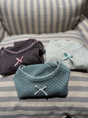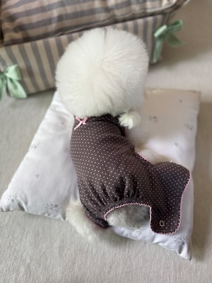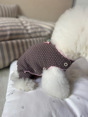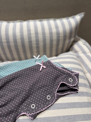 【予約】[ SICGGU ]brown / Cotton Dot Ribbon Snap All-in-One