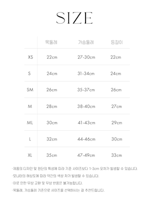 SM 首回り/26cm 胸囲/35-37cm 着丈/26cm