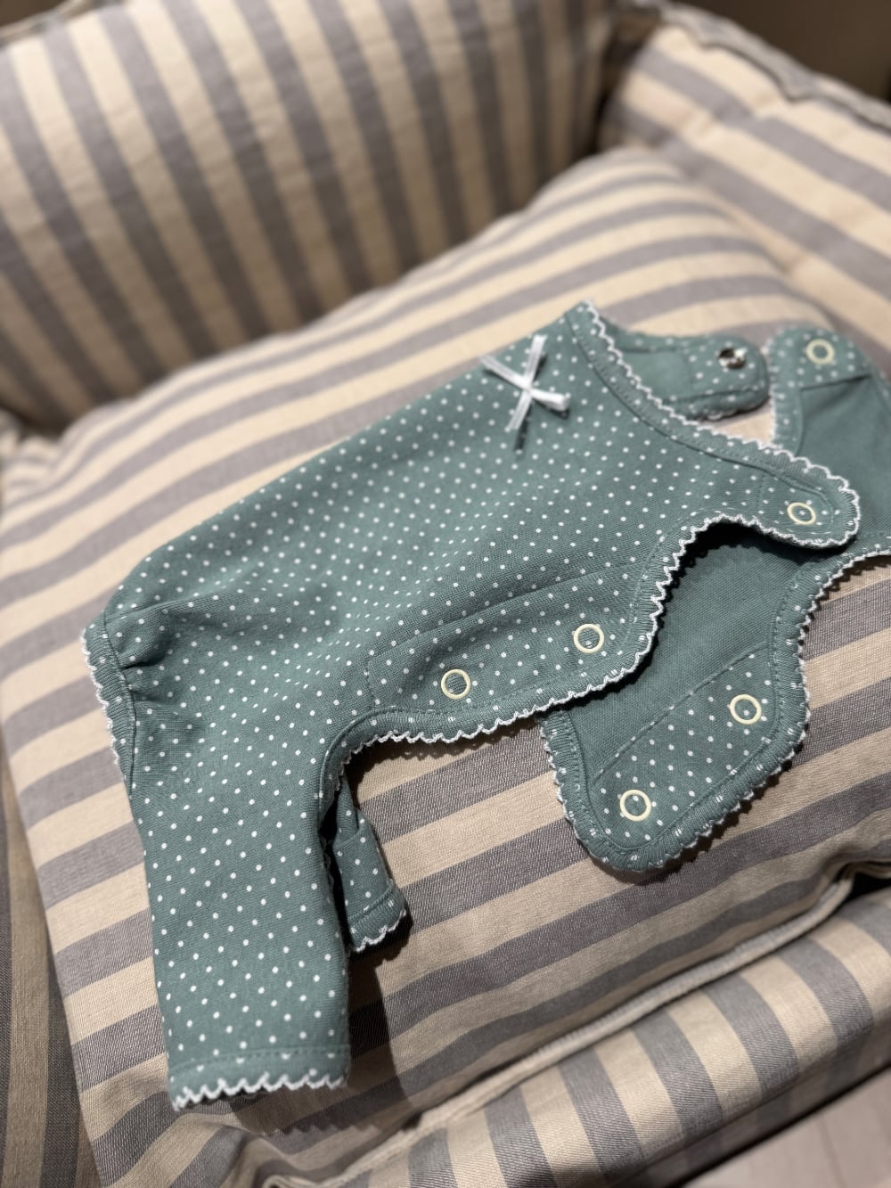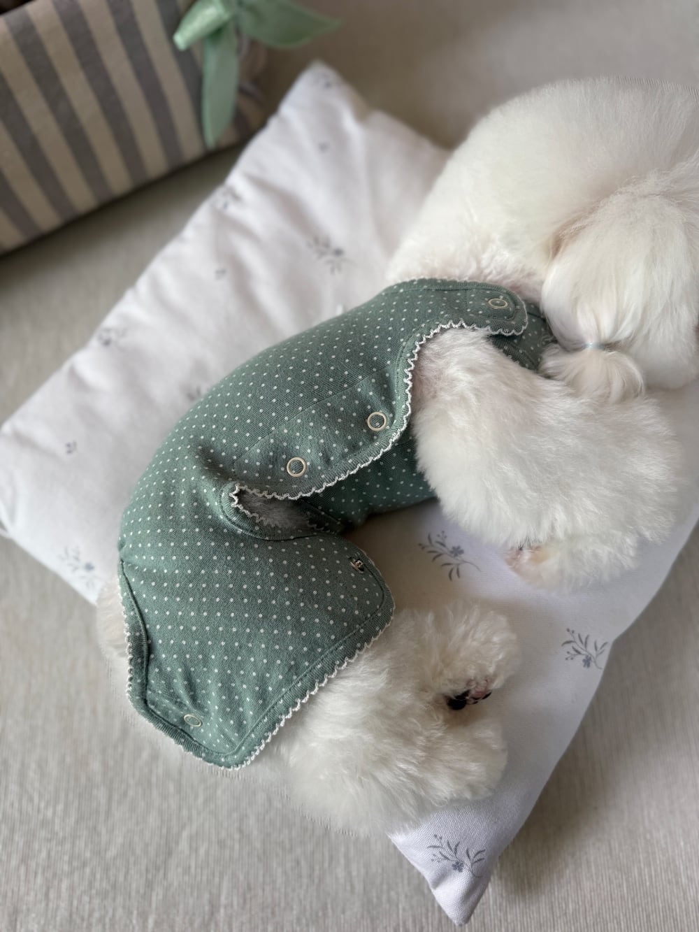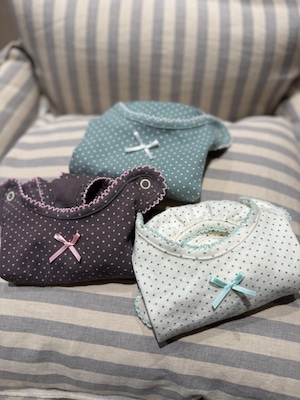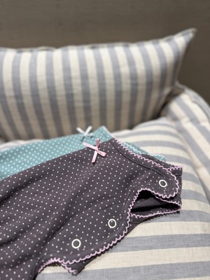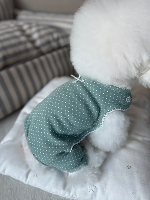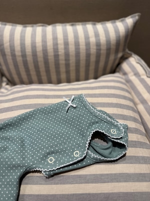 【予約】[ SICGGU ]mint / Cotton Dot Ribbon Snap All-in-One