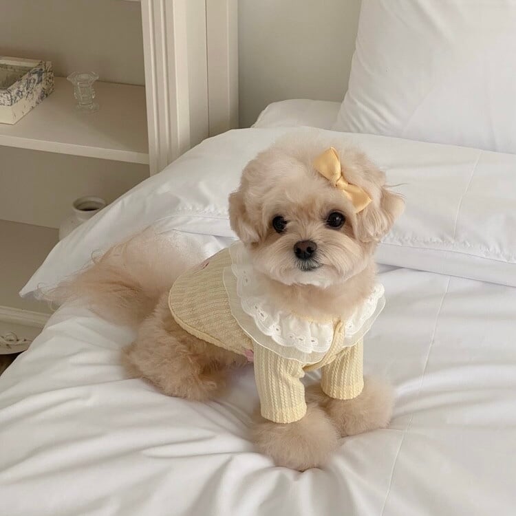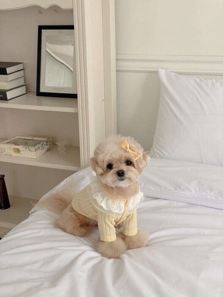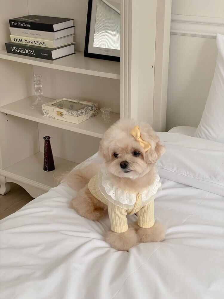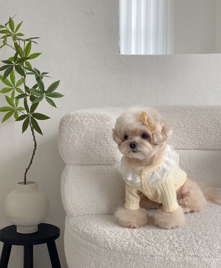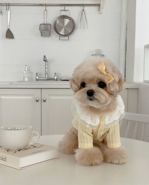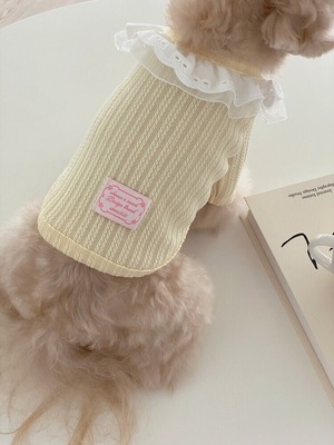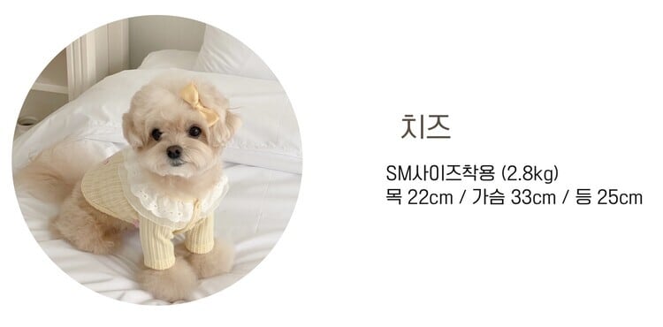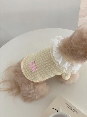 イエロー:SMサイズ着用/首回り/ 22cm 着丈/ 25cm 胸囲/ 32cm 体重/2.7kg