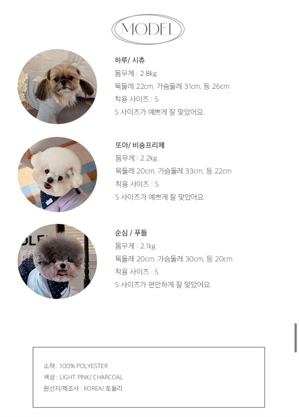 首回り22cm、胸囲31cm、背囲26cm