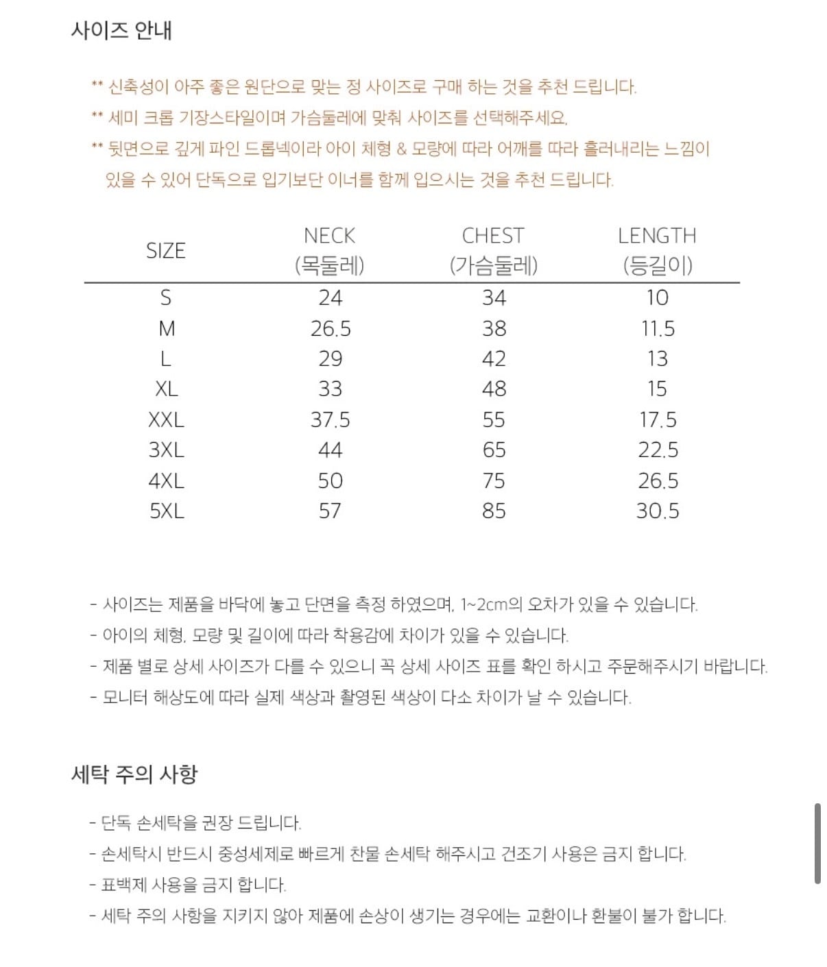 - 洗濯注意事項を守らずに製品に損傷が生じた場合、交換や返金はできません。