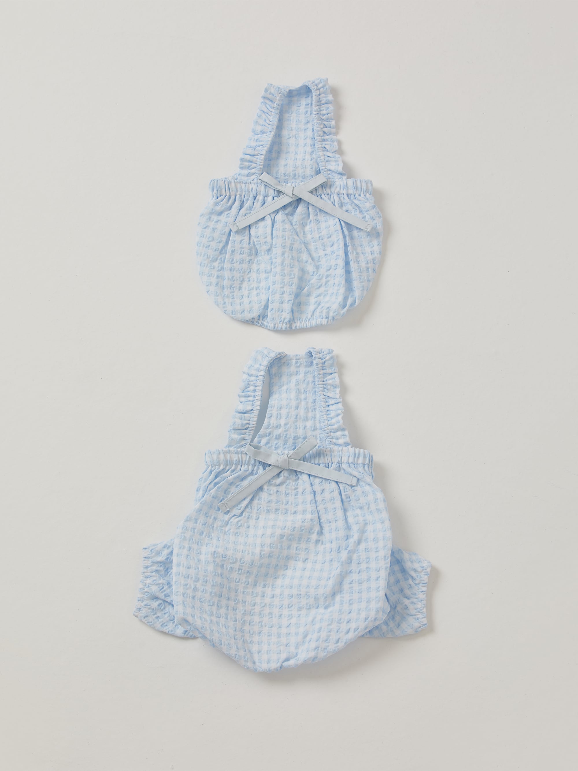 ・やわらかなベビーブルーのトーンが際立つチェックパターン