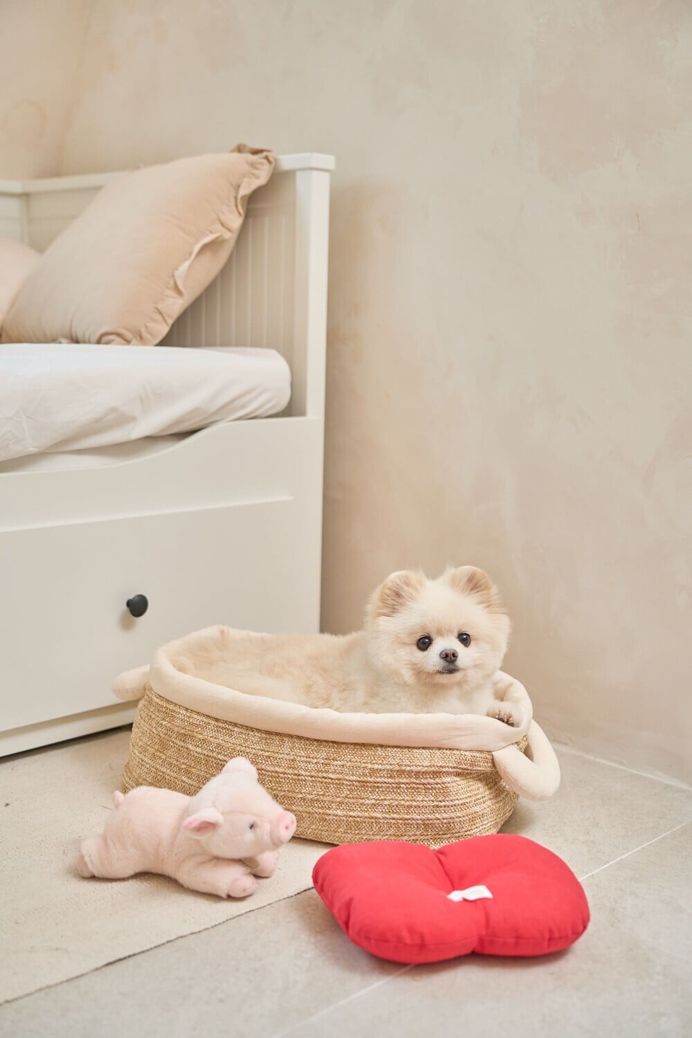 ウルの子犬のための『ハグミ ラタンバスケット』