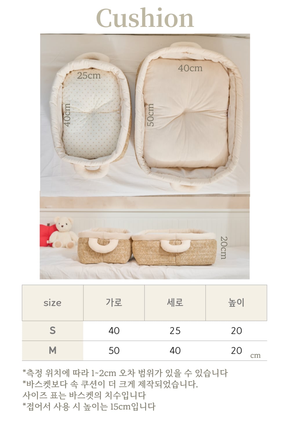 *バスケットよりも内部クッションが大きく作られています。