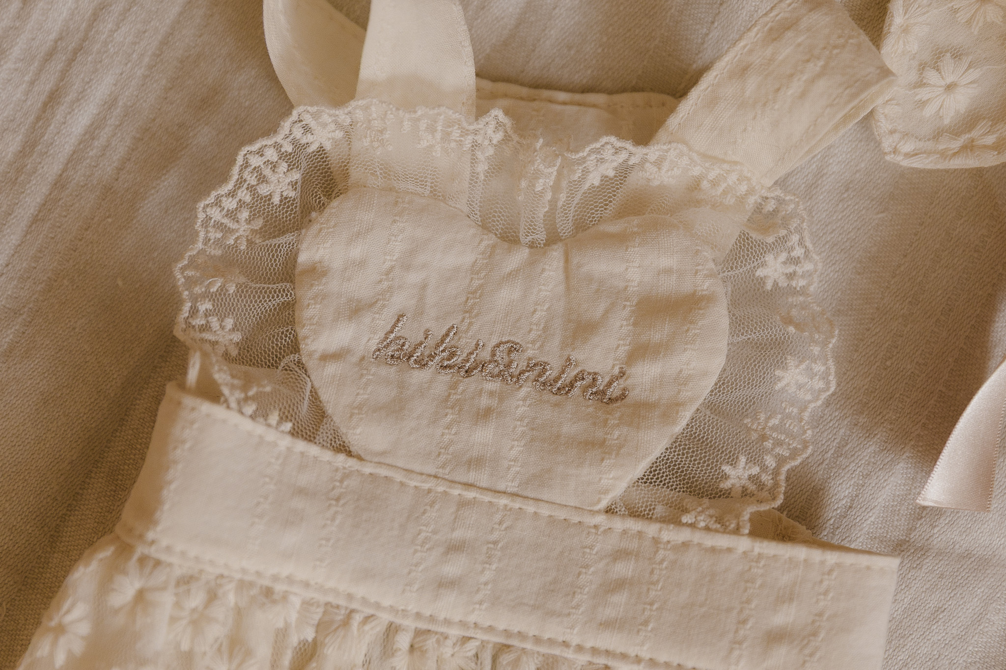 愛らしい2段フリルスカートとハート型のバックデザインが、Kiki & Niniならではのキュートでヴィンテージな魅力を繊細に表現しています。