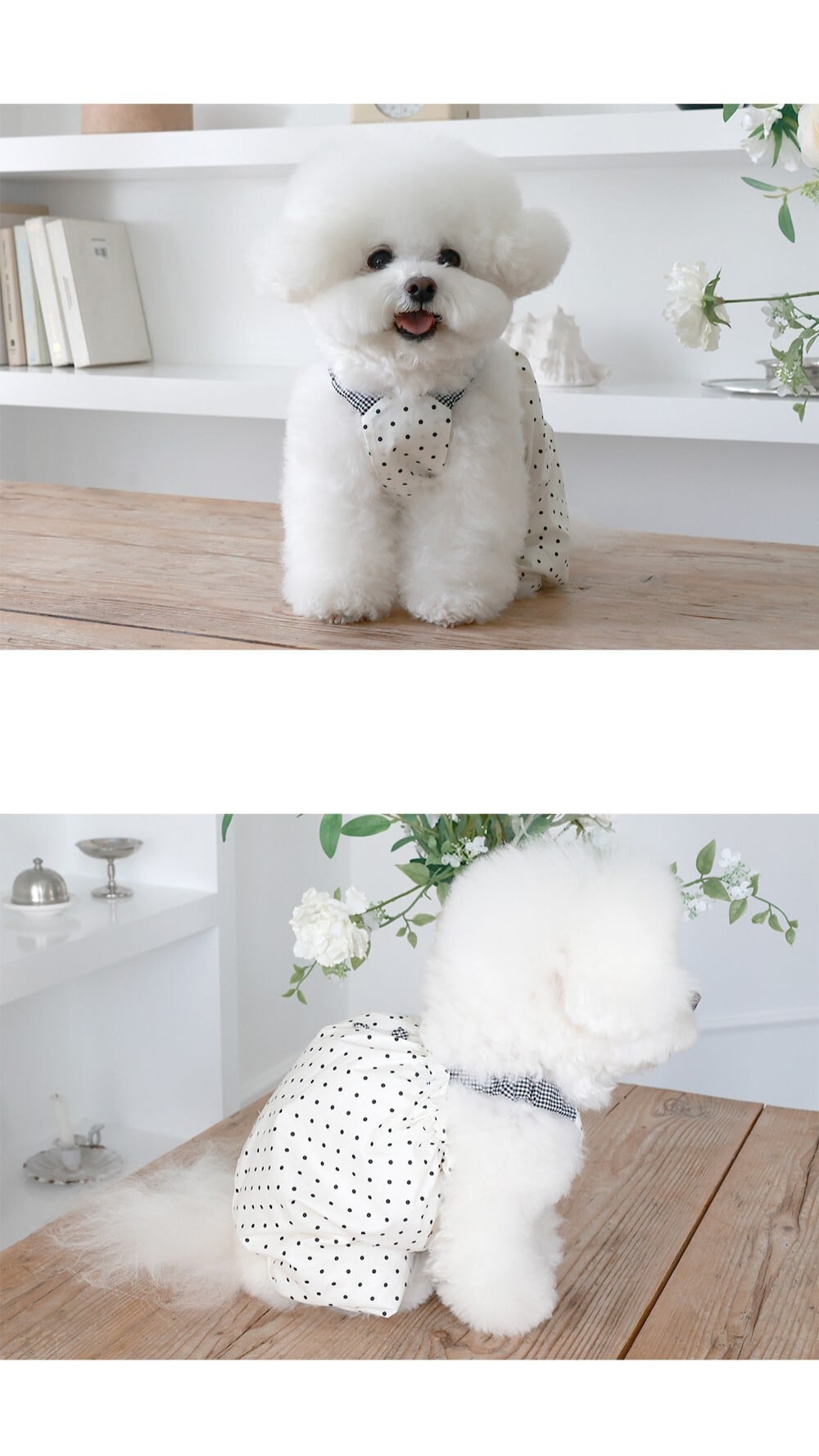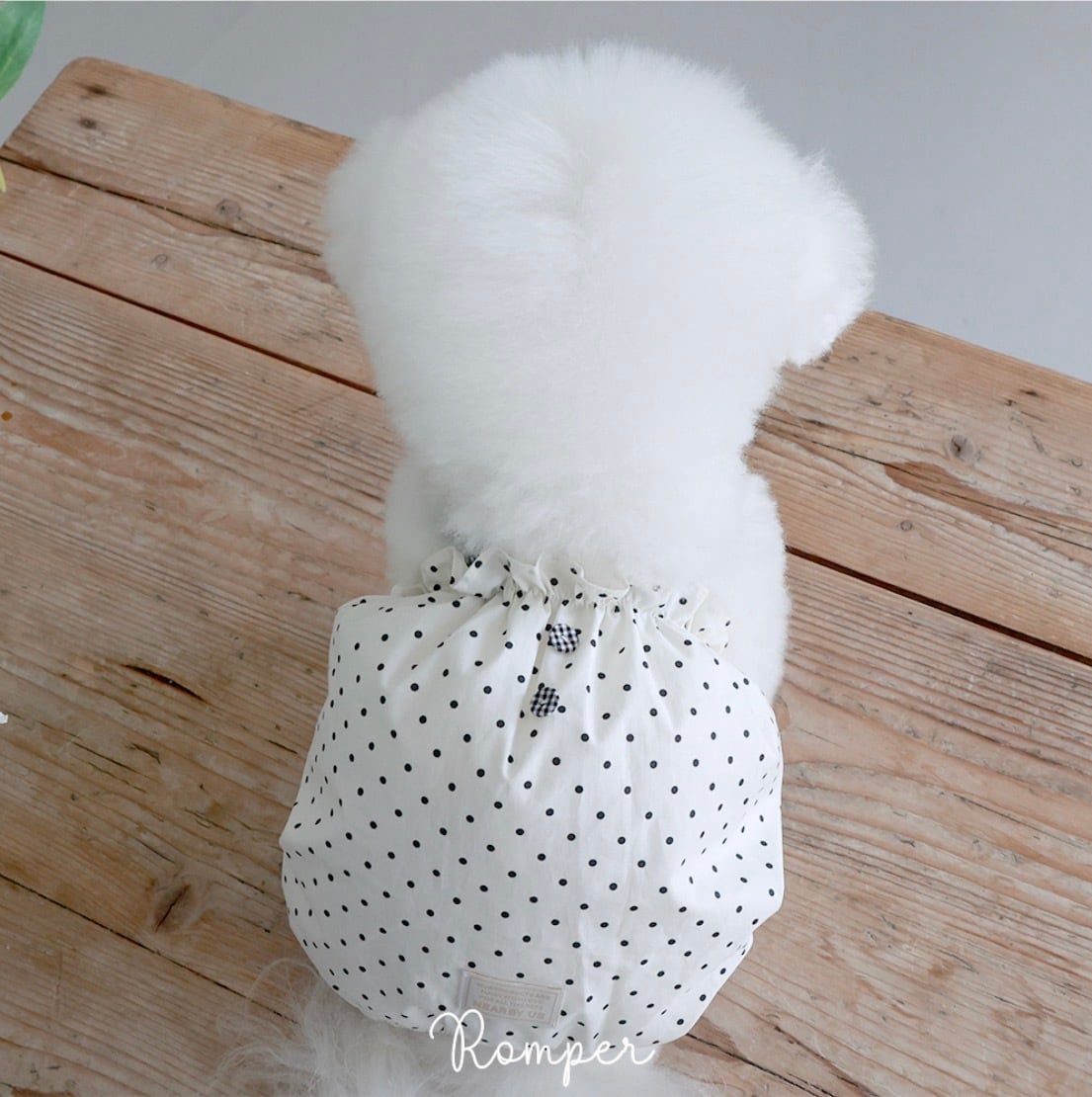 体重3.2kg、胸囲36cm、着丈26cm 首回り24cm:Mサイズ着用