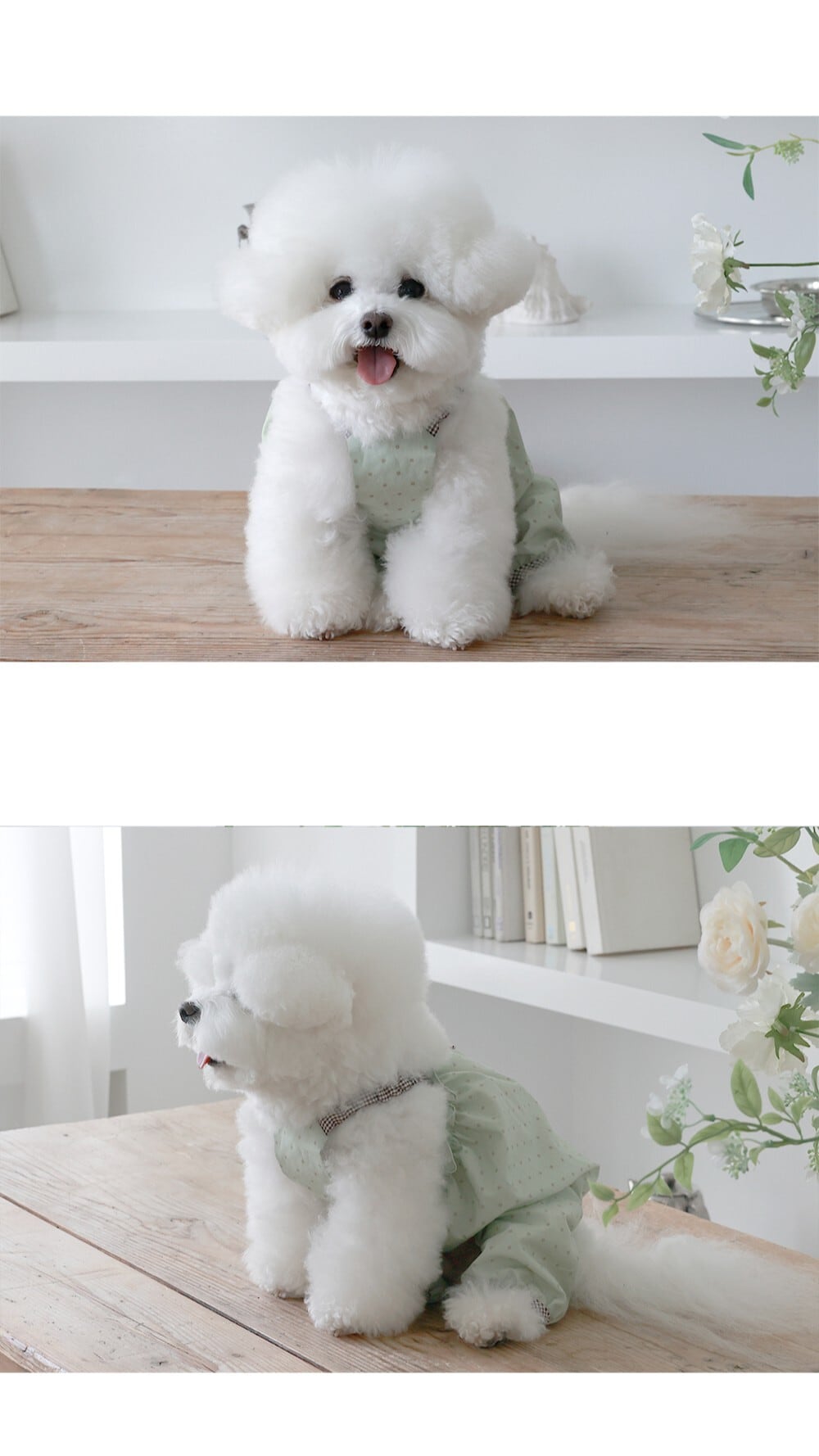 体重3.2kg、胸囲36cm、着丈26cm 首回り24cm:Mサイズ着用