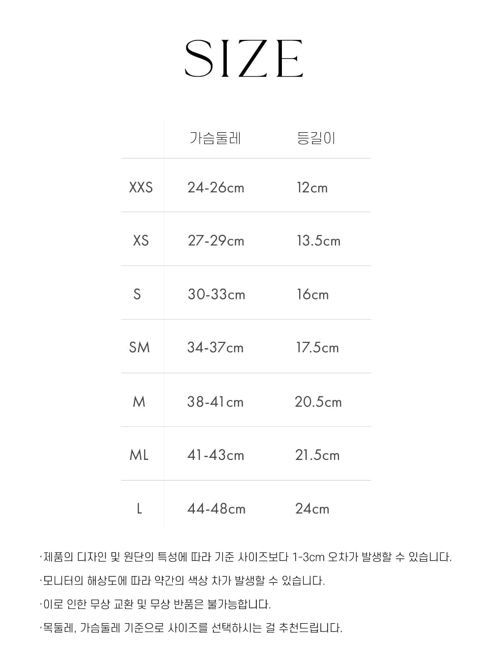 SM 胸囲/34-37cm 着丈/17.5cm