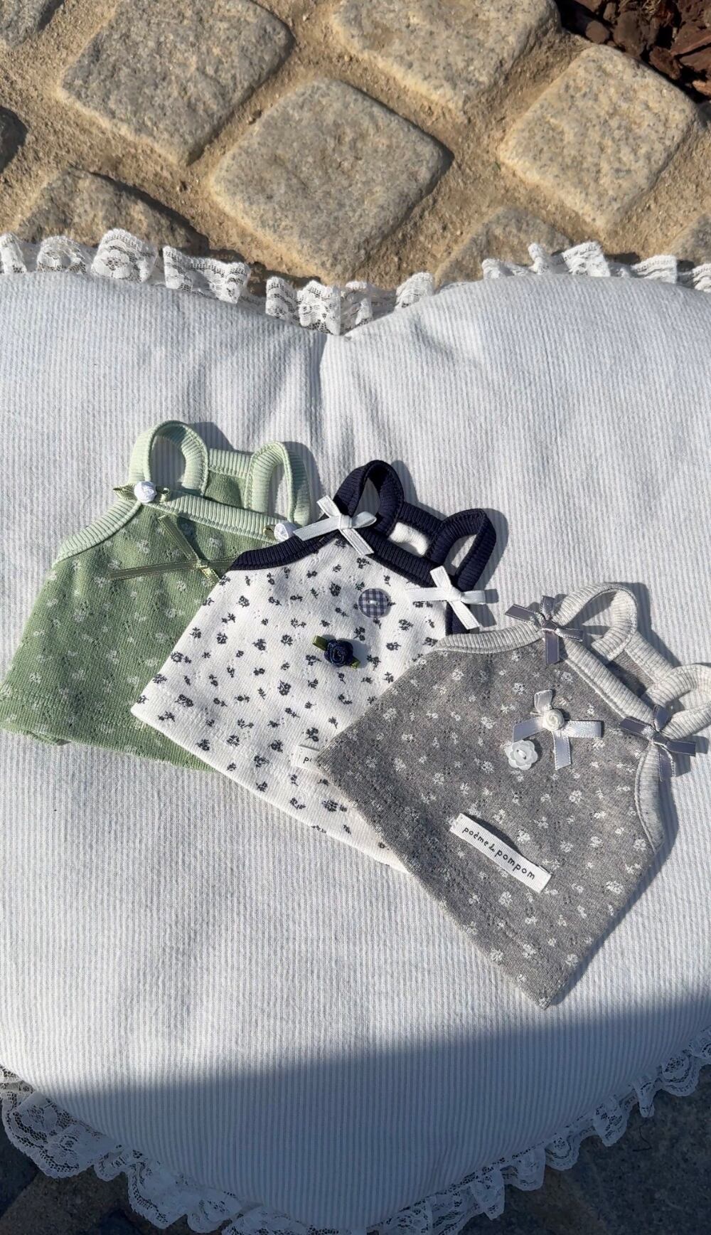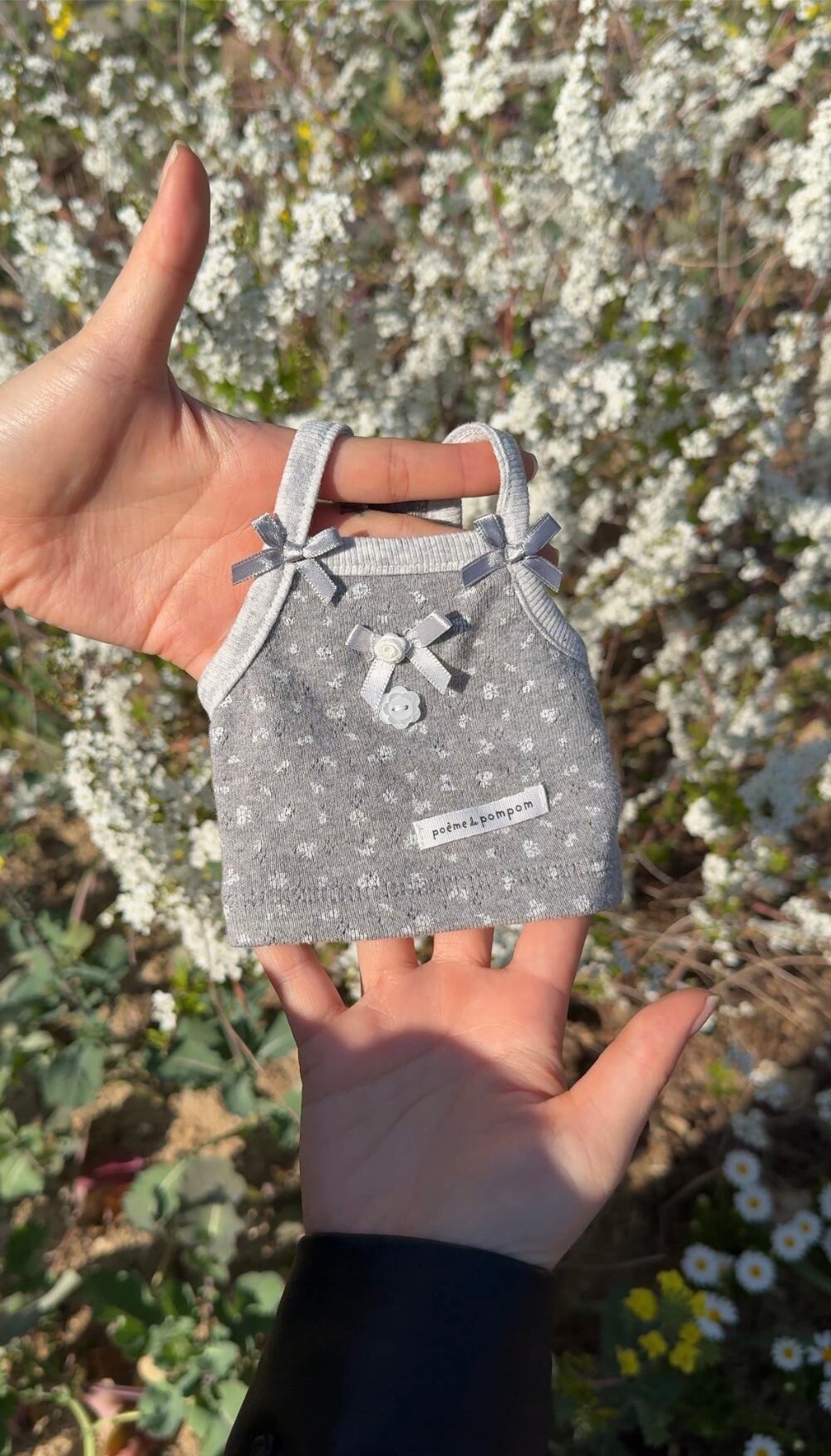 【予約】[ POEME DE POMPOM sicggu ](グレー)プチフラワーコットンノースリーブ