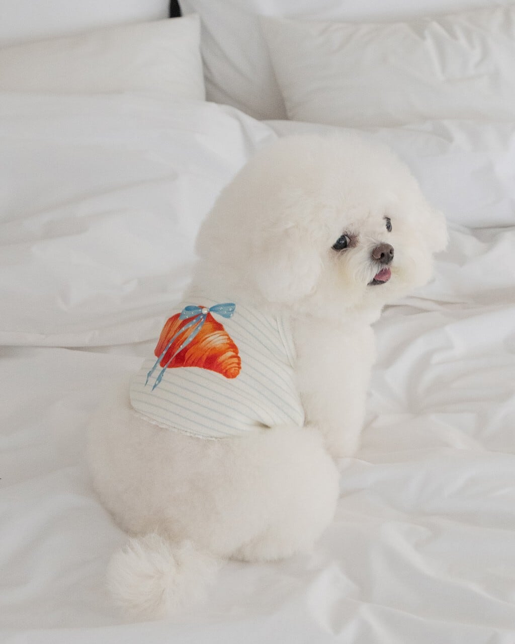 - リアルなクロワッサングラフィックの上に空色のドットリボンが加わり、童話のようなムード