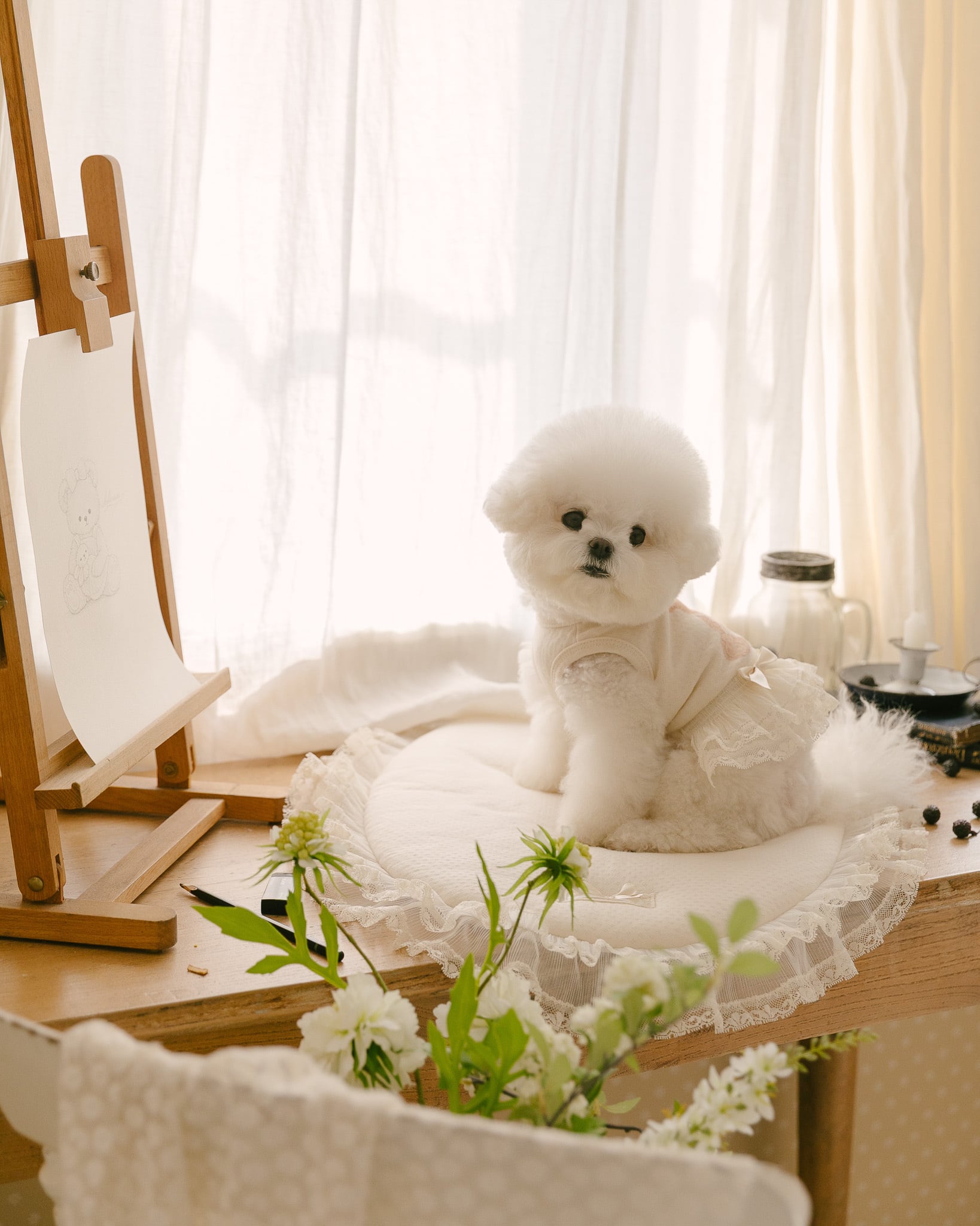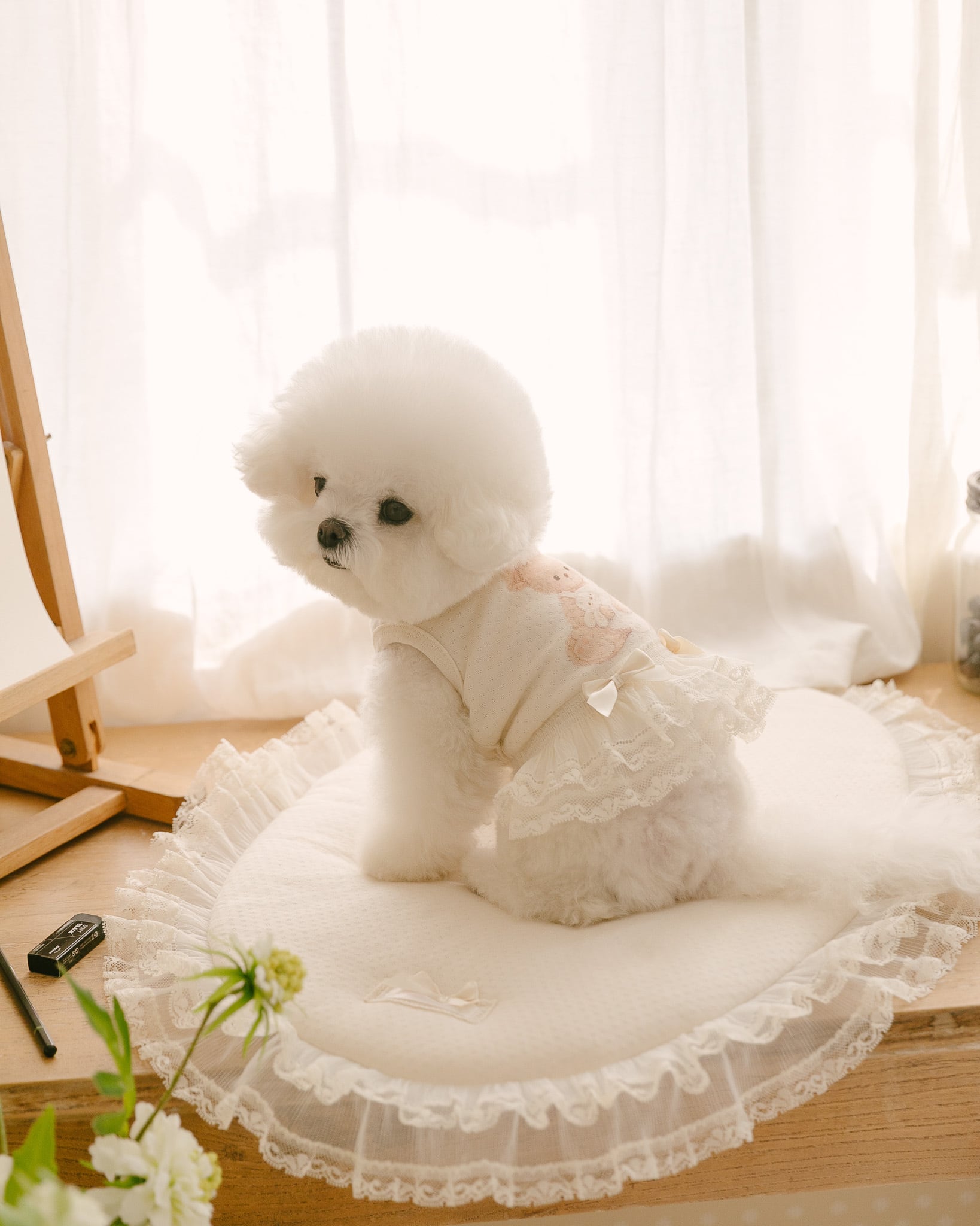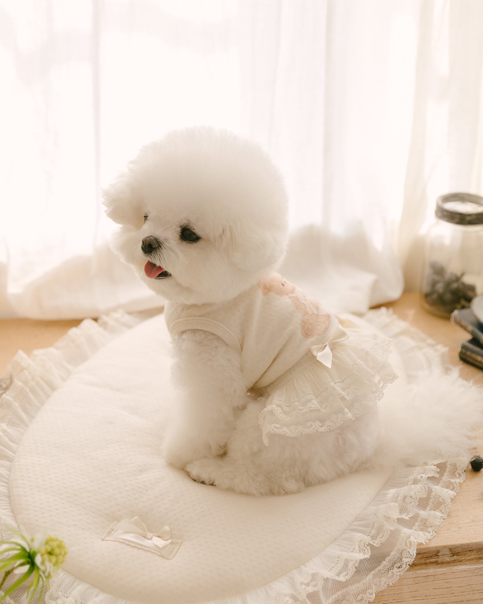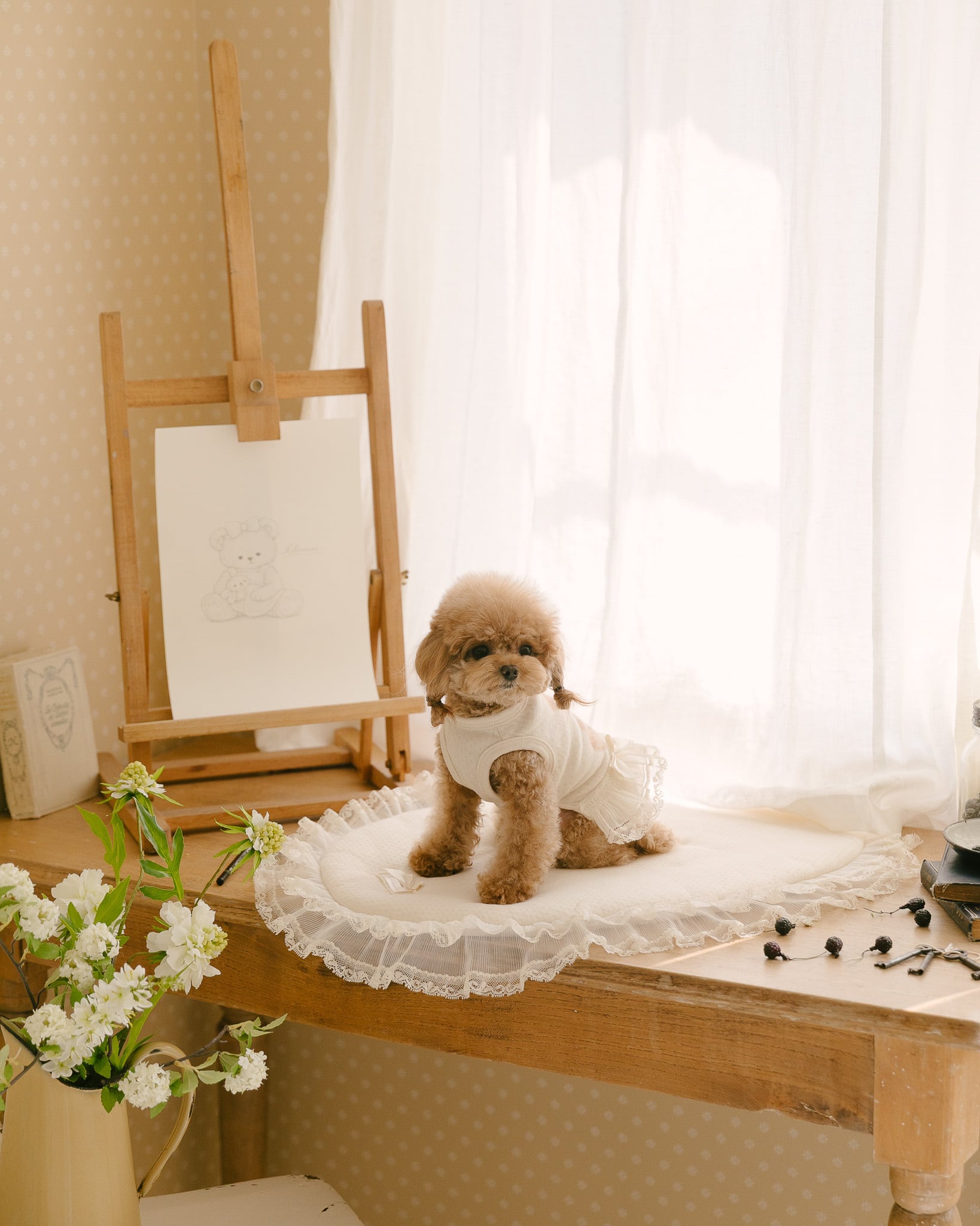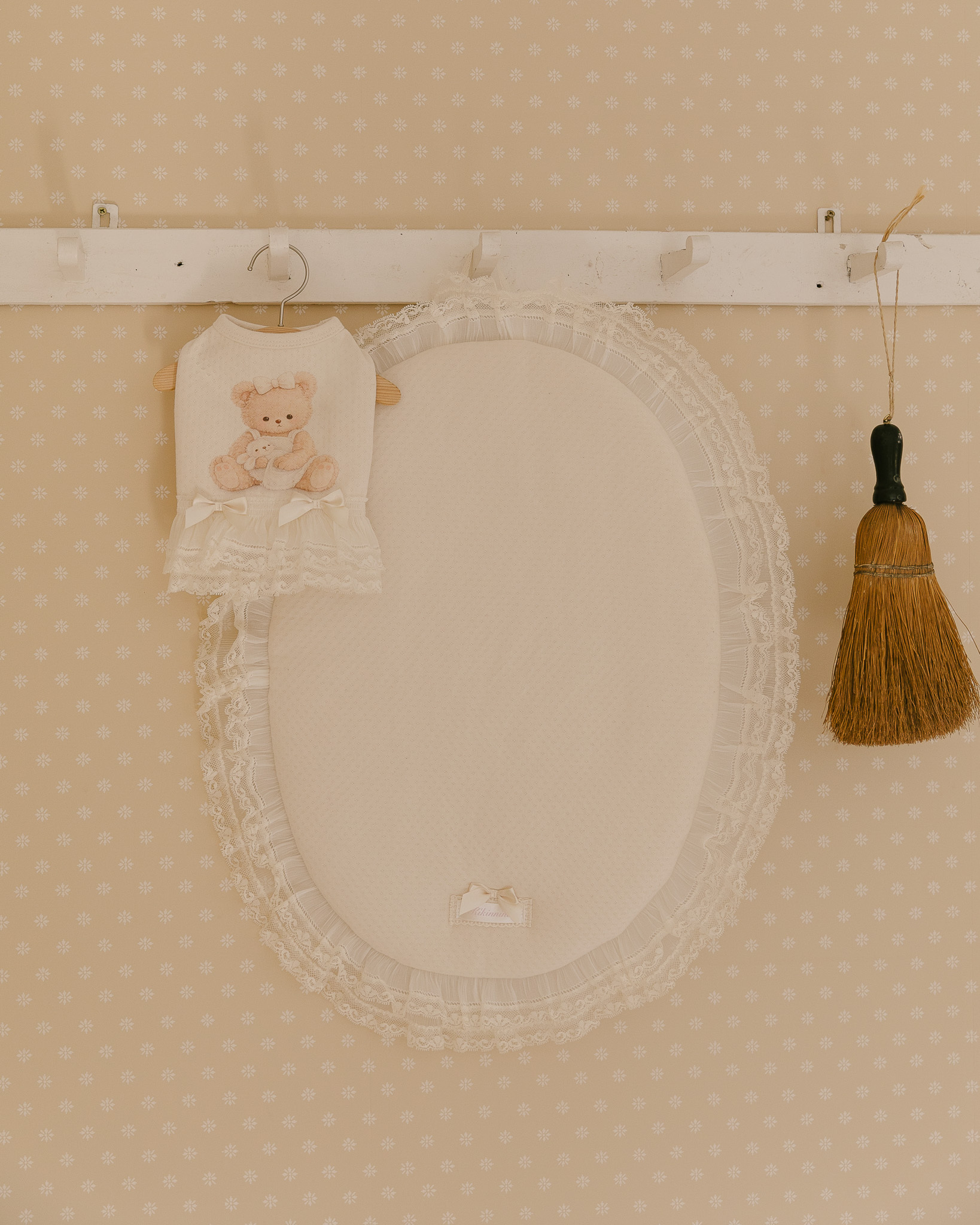 柔らかいクリーム色のほのかな質感が魅力的なアイレット生地の上に