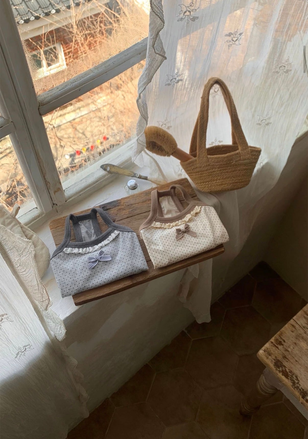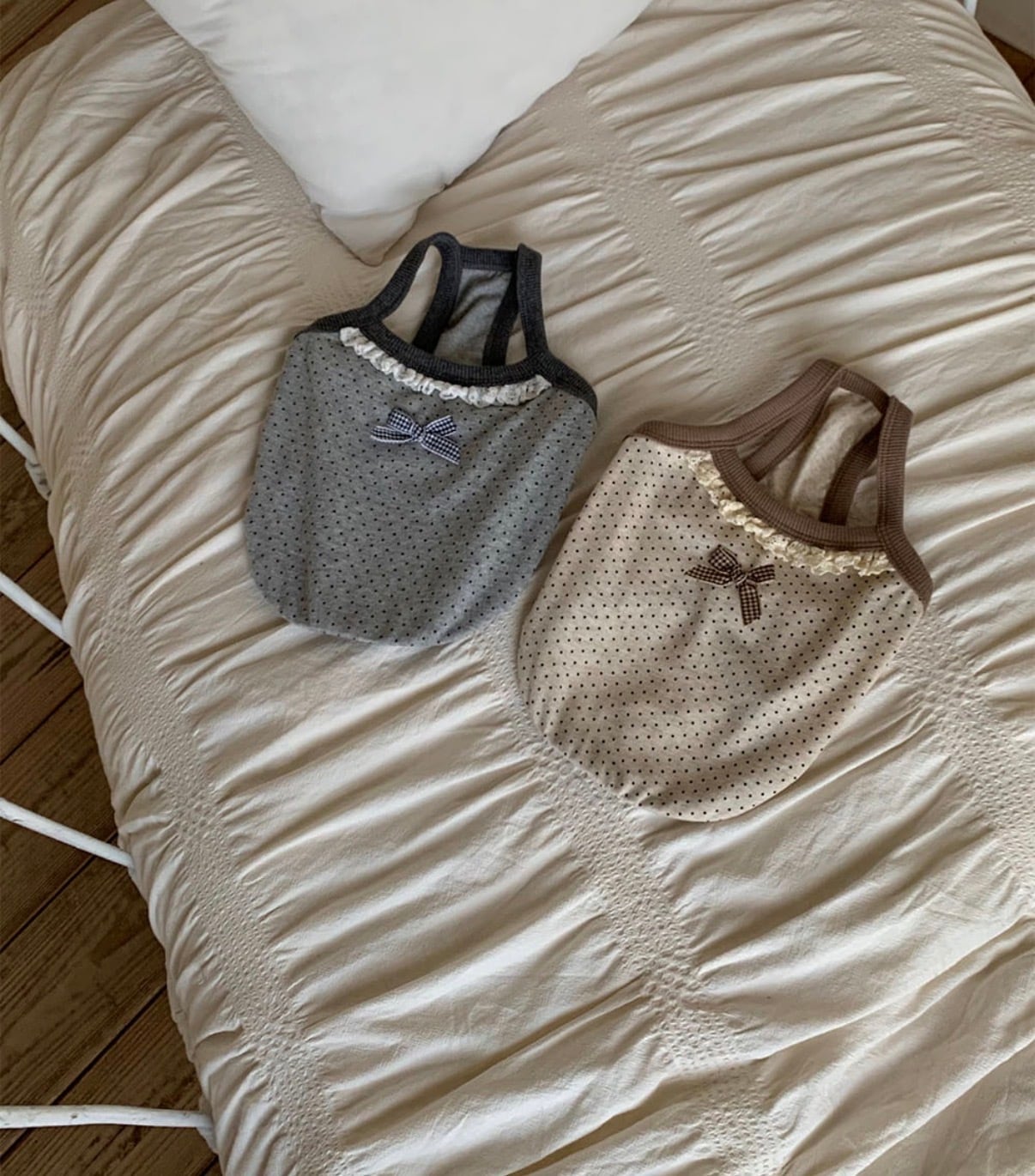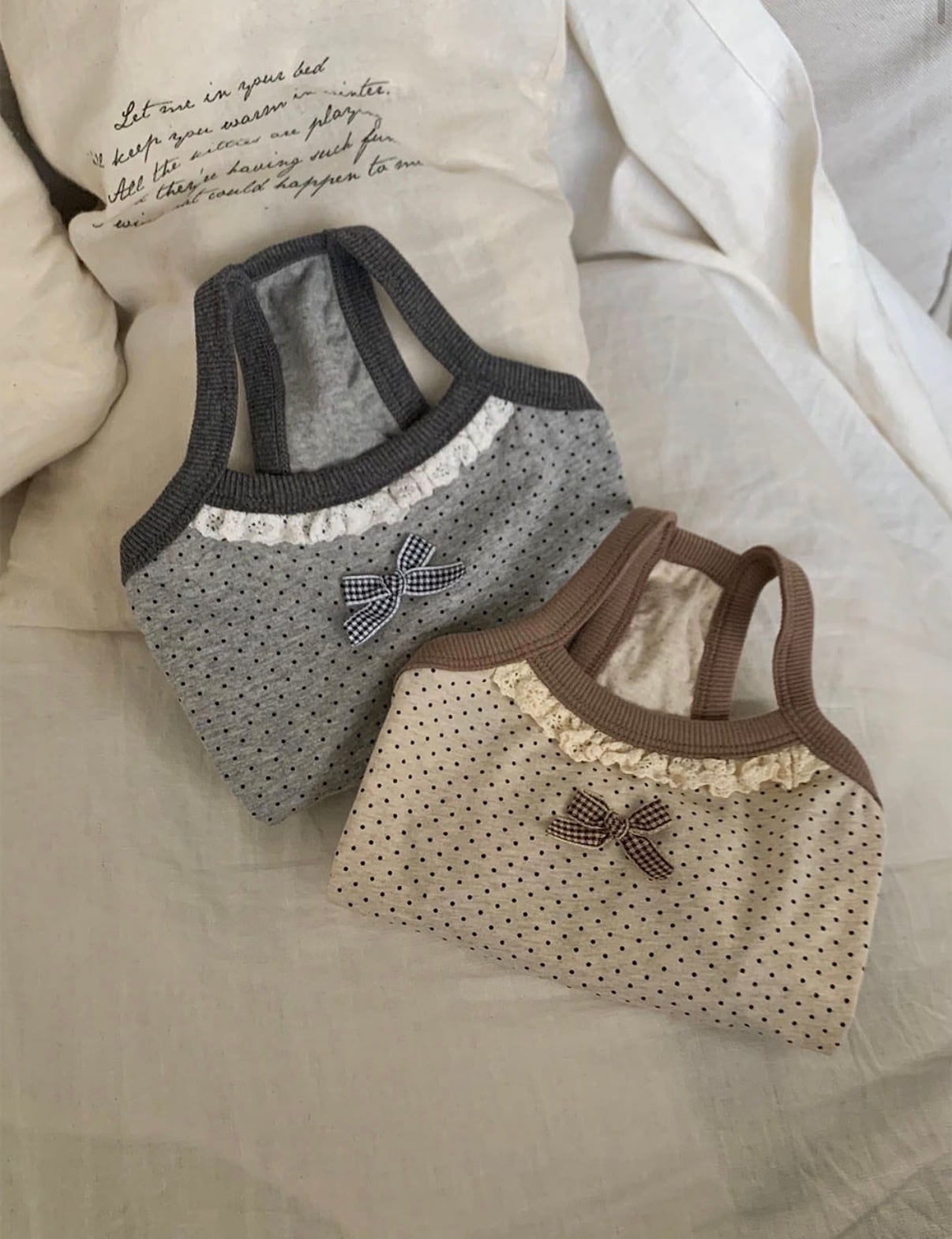 柔らかなミニドット柄と繊細なレースのディテールが、