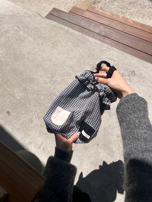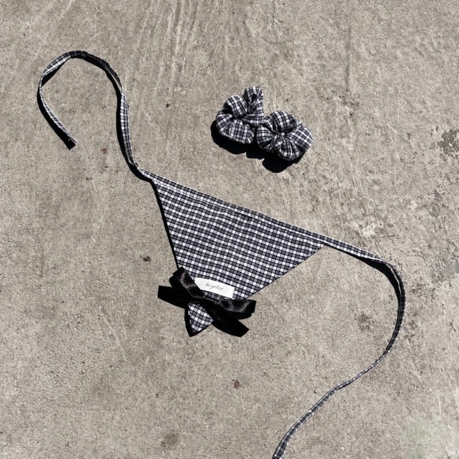 チェック柄のバンダナとシュシュを加えて