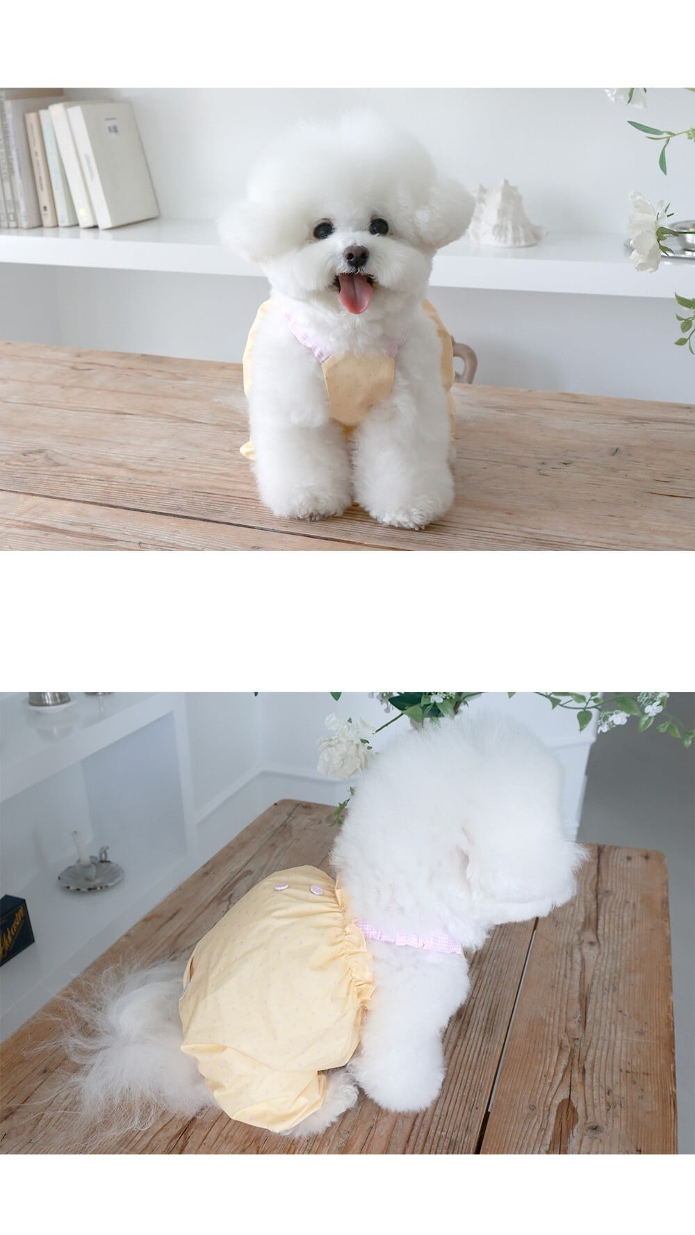 体重3.2kg、胸囲36cm、着丈26cm 首回り24cm:Mサイズ着用