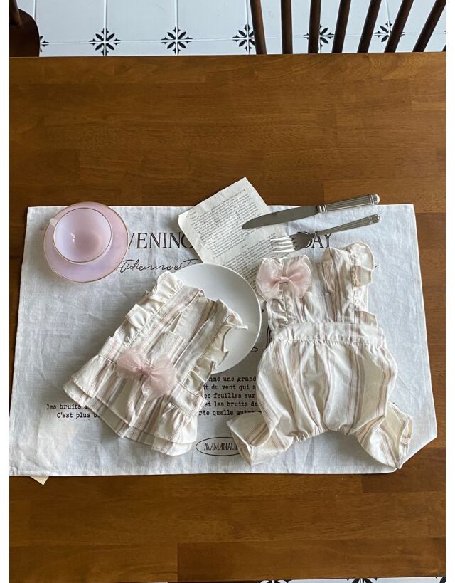 【予約】[Hi yeboo]beige&pink/ romper Bon Voyage Collection