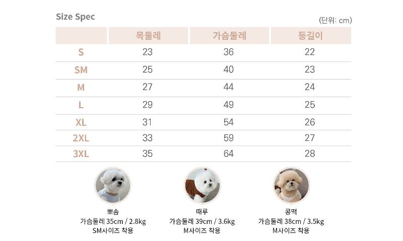 SM 首回り/25cm 胸囲/40cm 着丈/23cm