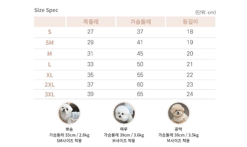 SM 首回り/29cm 胸囲/41cm 着丈/19cm