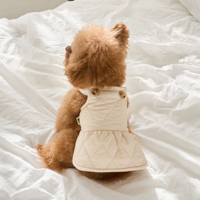 【予約】[EOMUKMARKET] クリーム/パディングキルティングサスペンダーワンピース