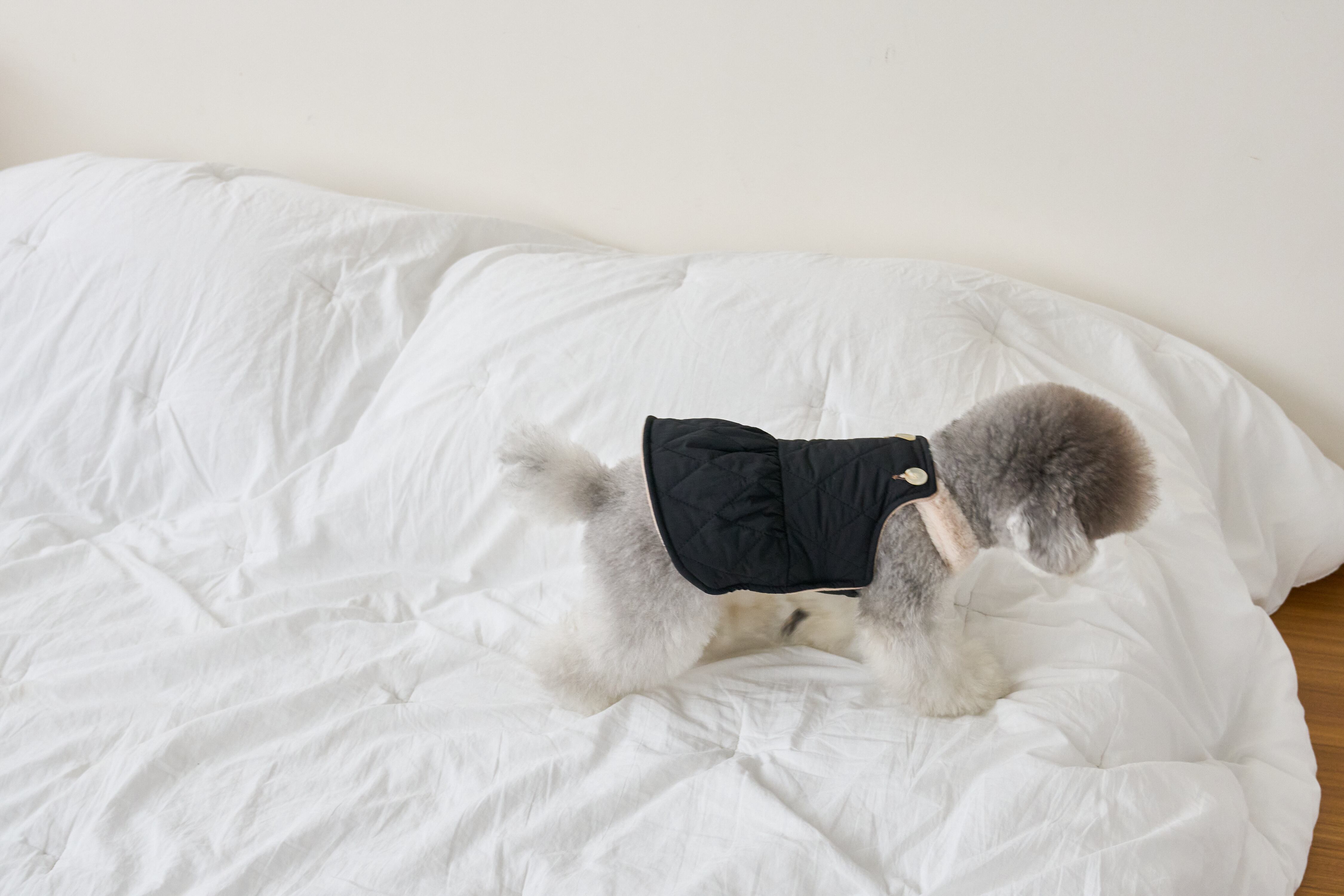 【予約】[EOMUKMARKET] ブラック/パディングキルティングサスペンダーワンピース