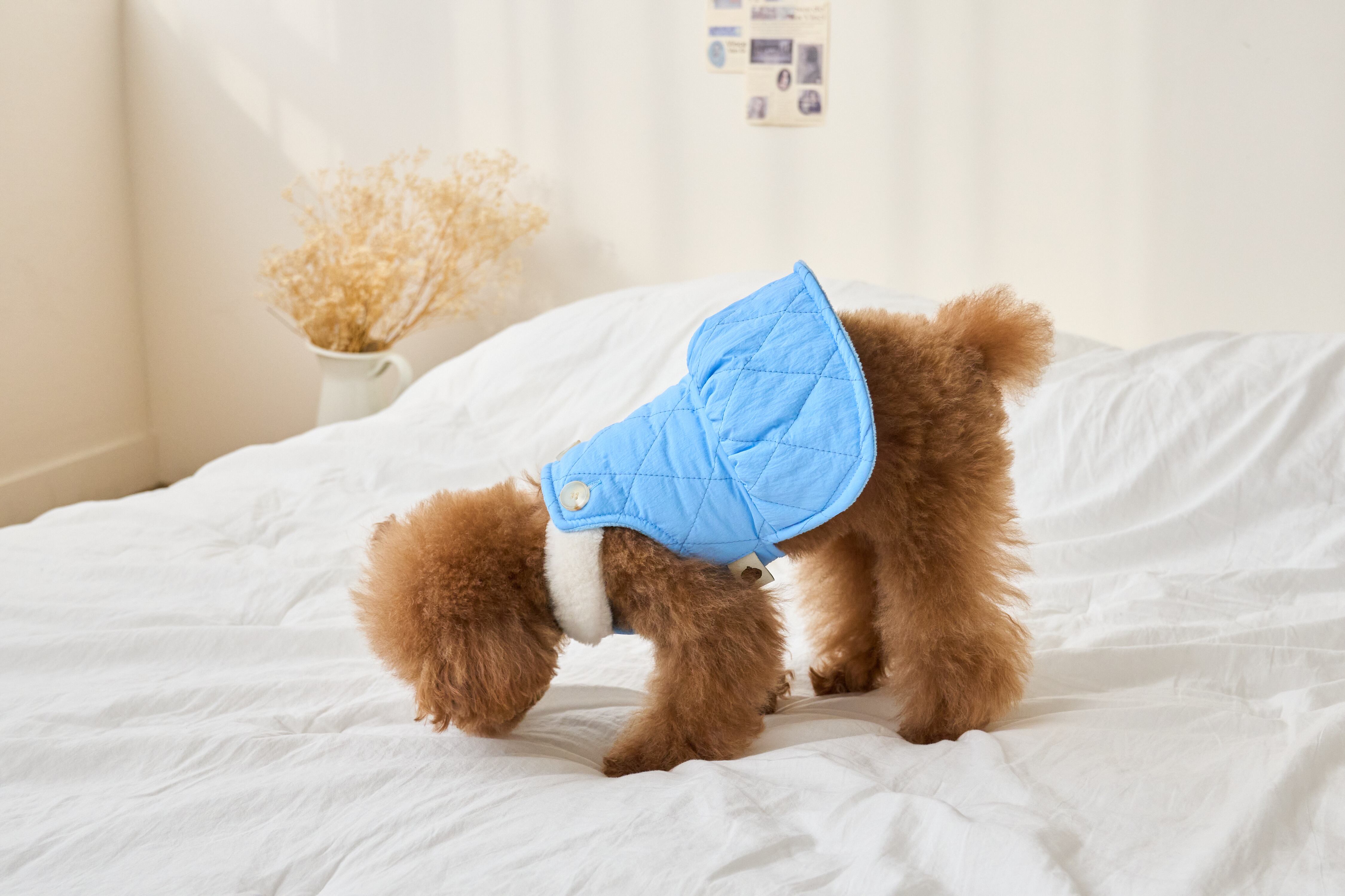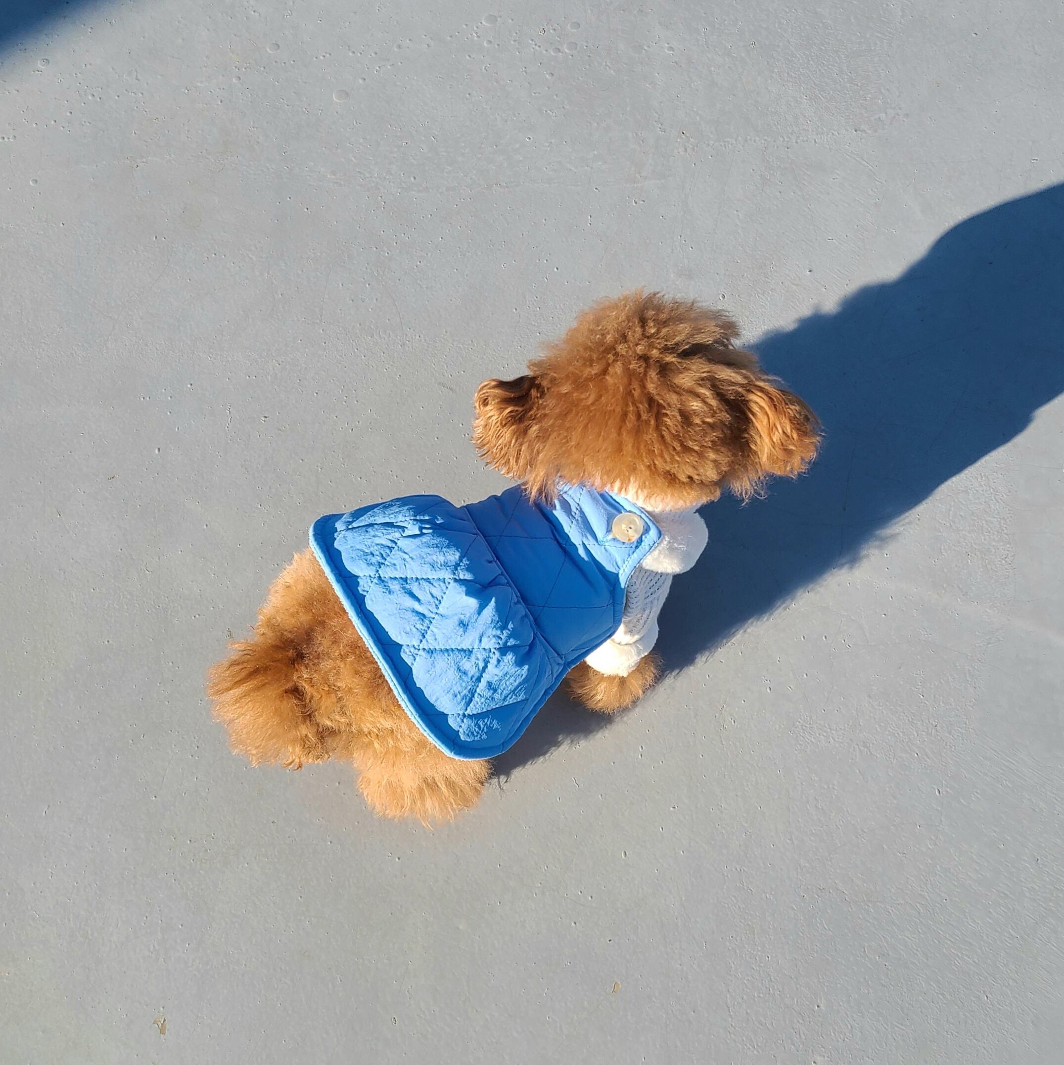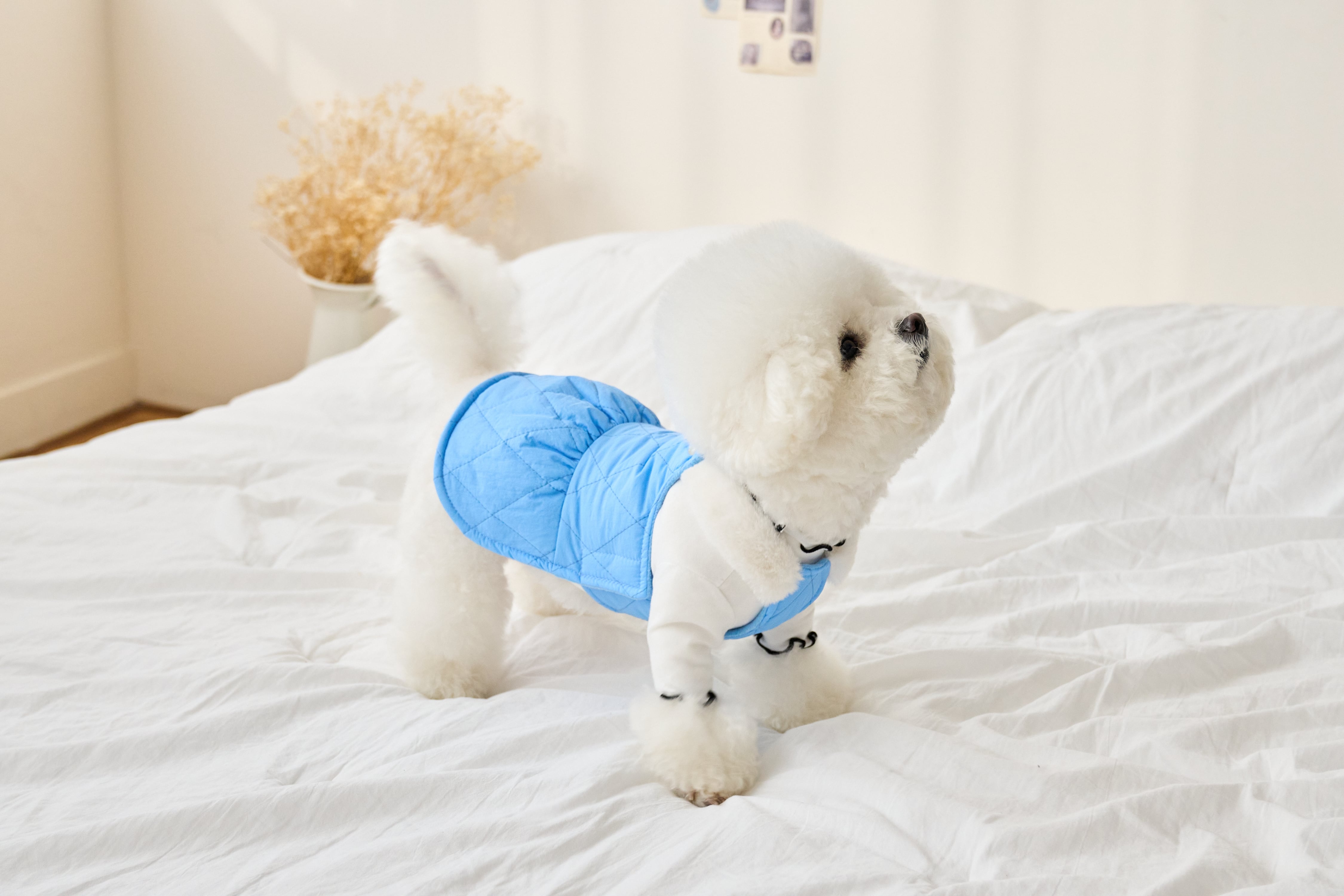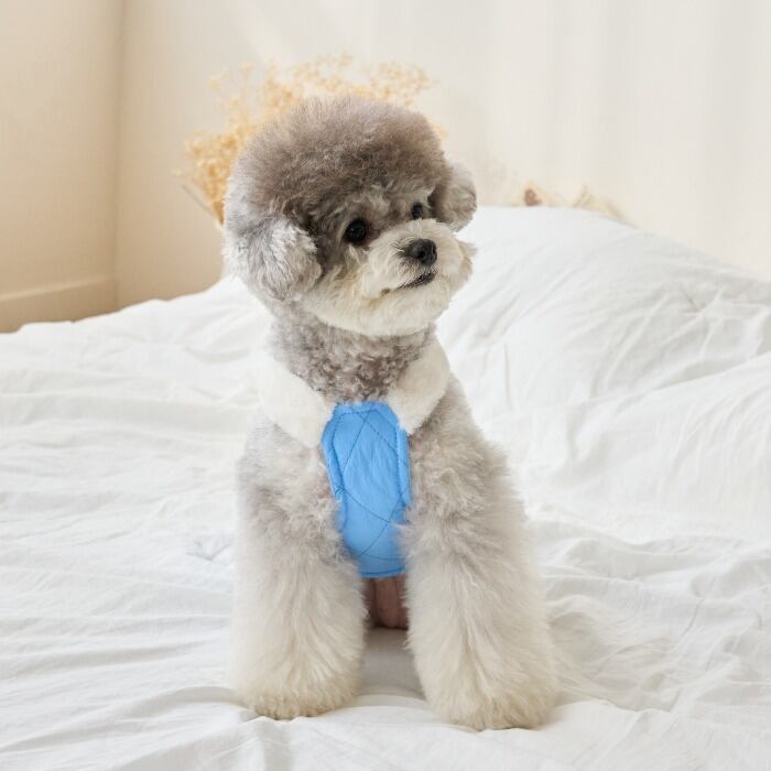 【予約】[EOMUKMARKET] スカイブルー/パディングキルティングサスペンダーワンピース
