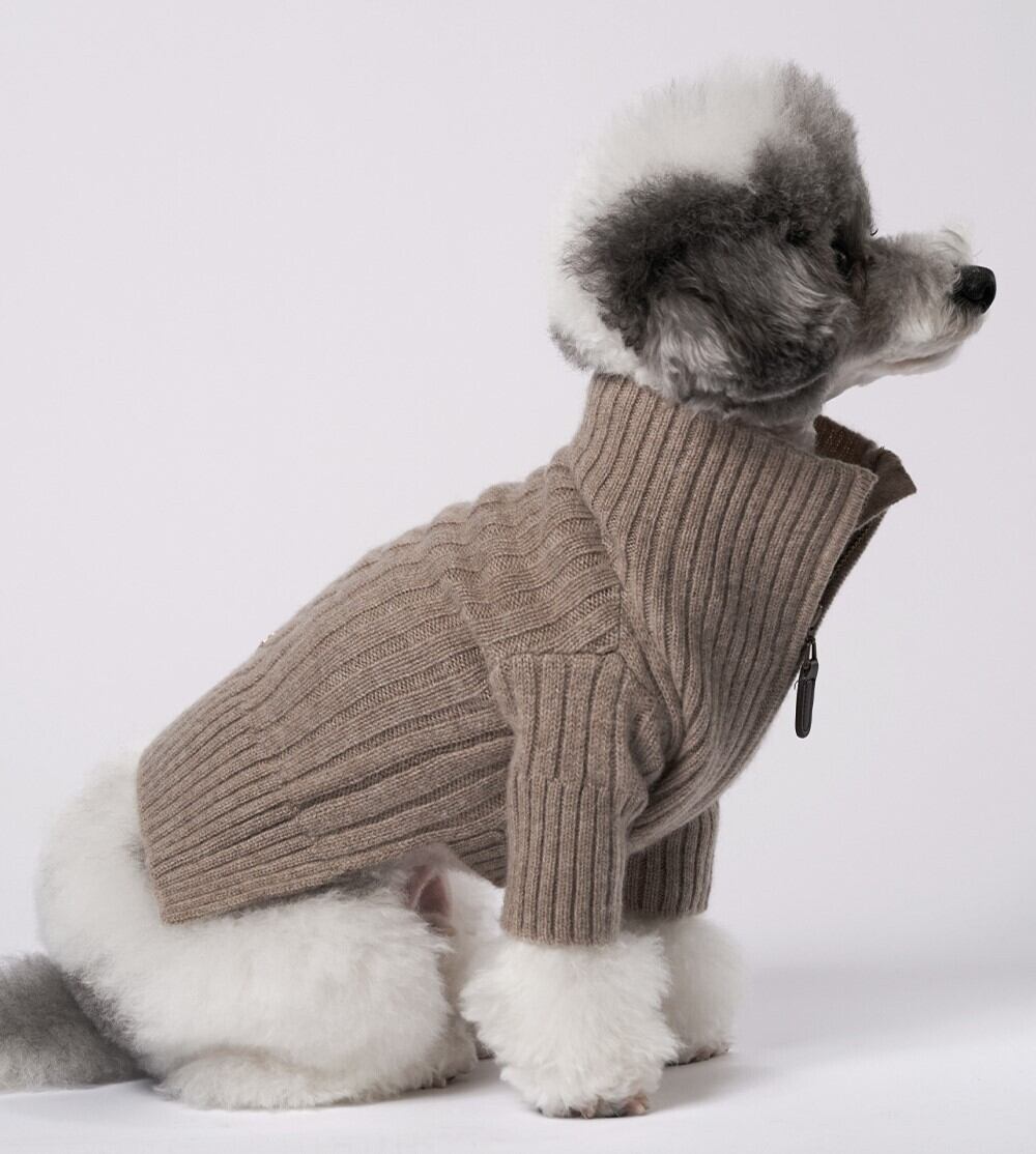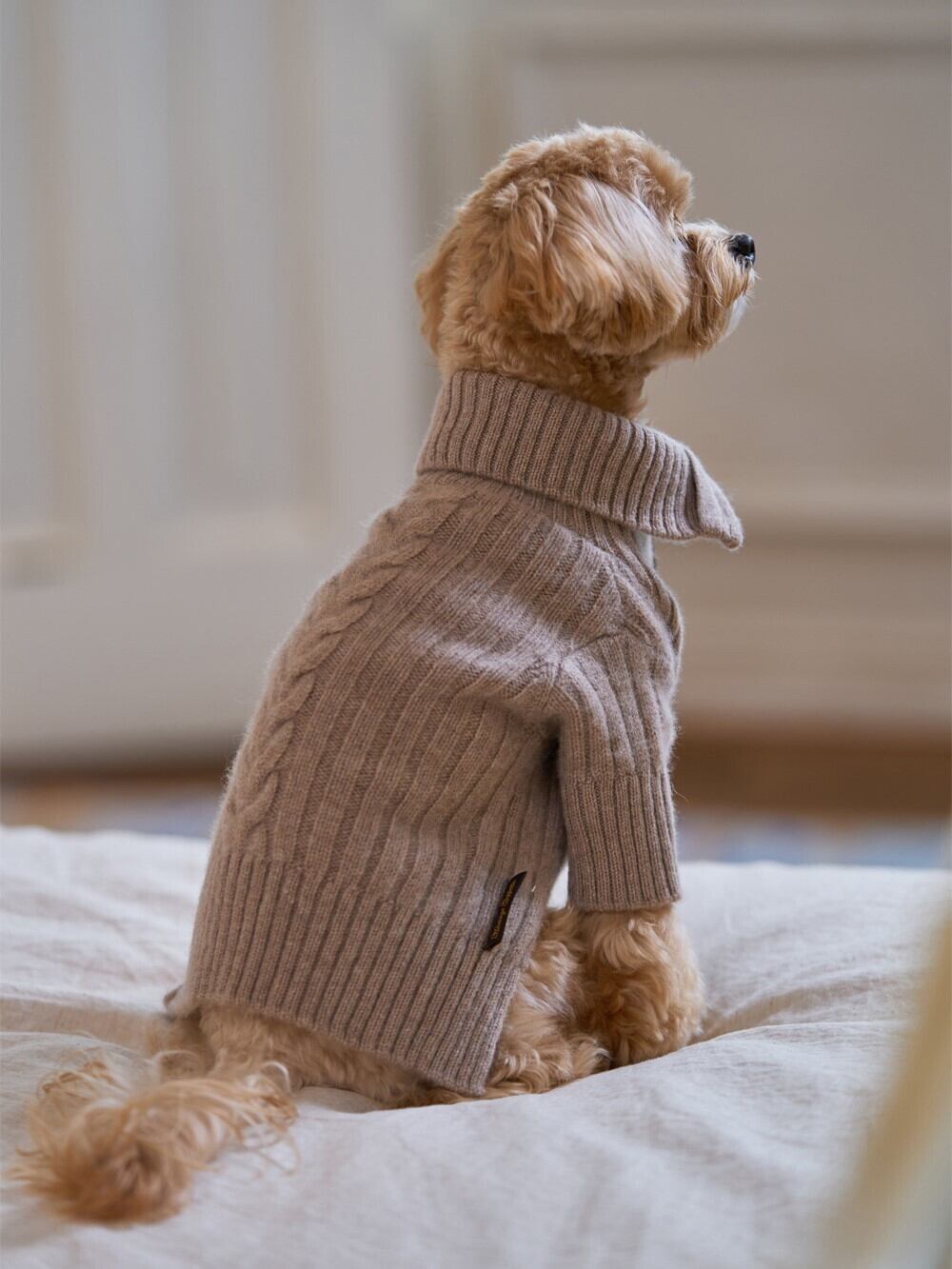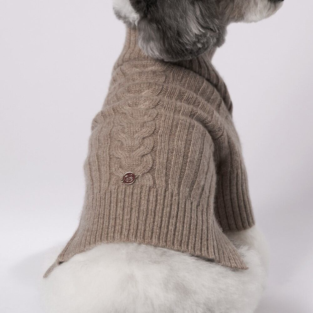 背中の大きなケーブル編みと全体的なリブスタイルで