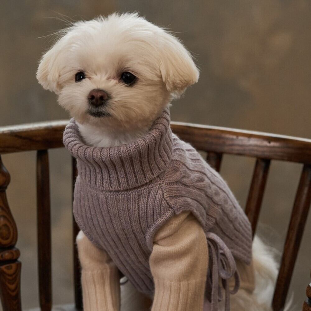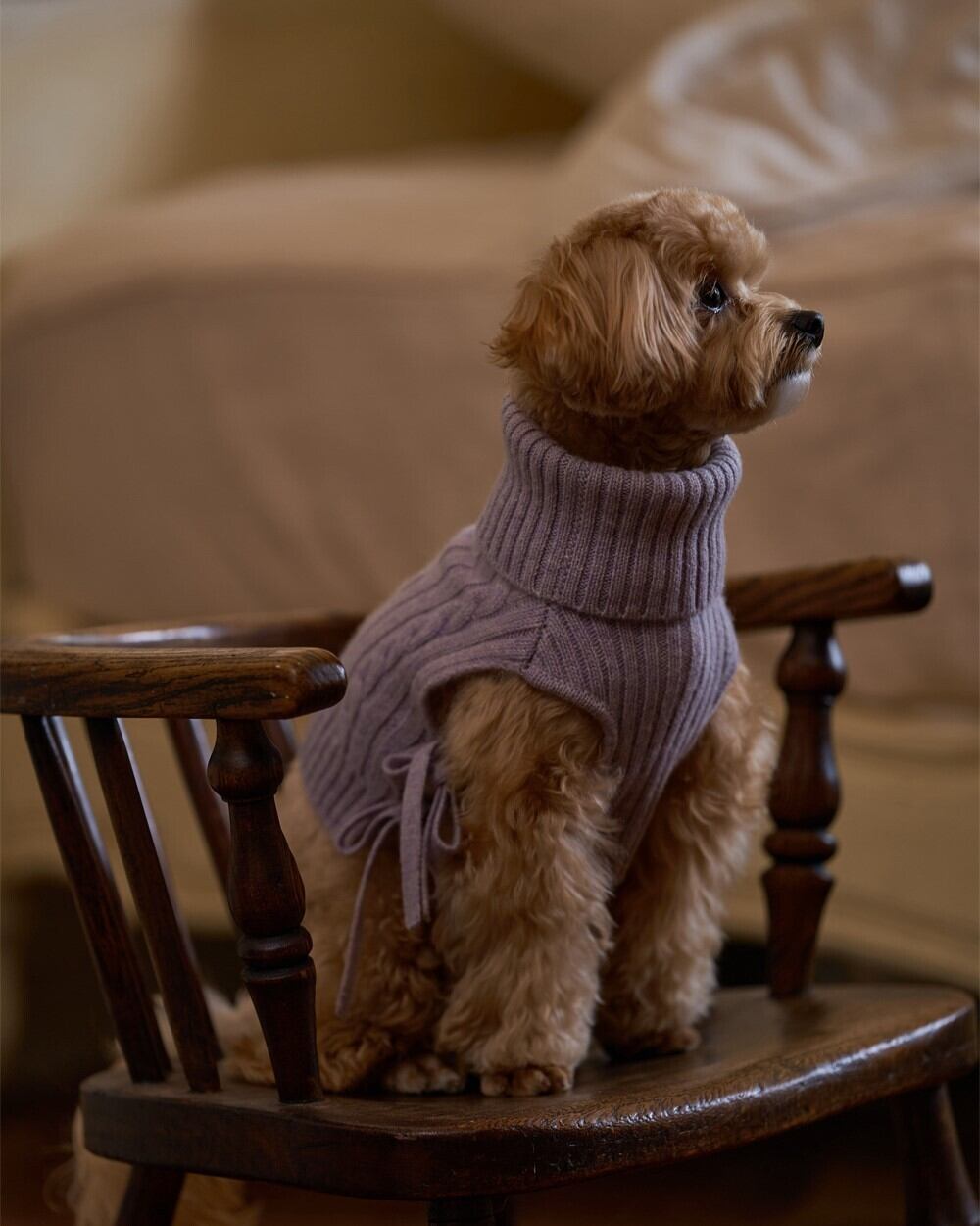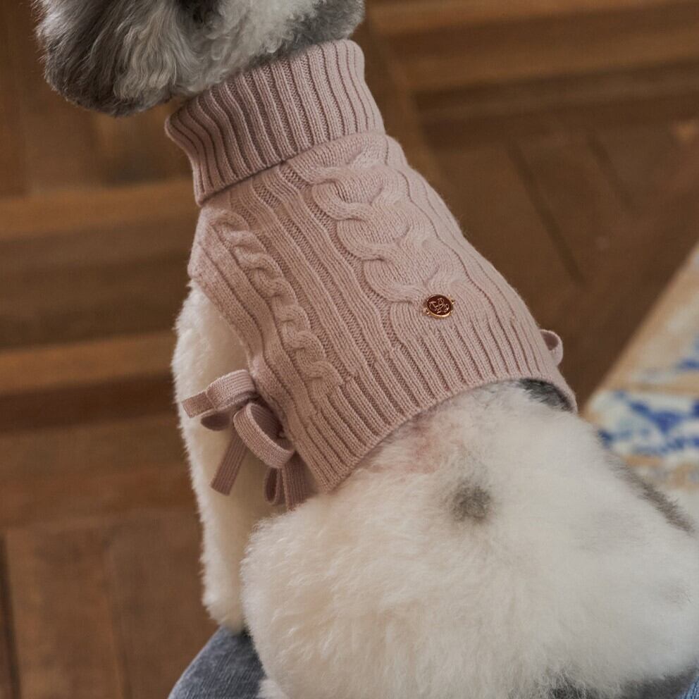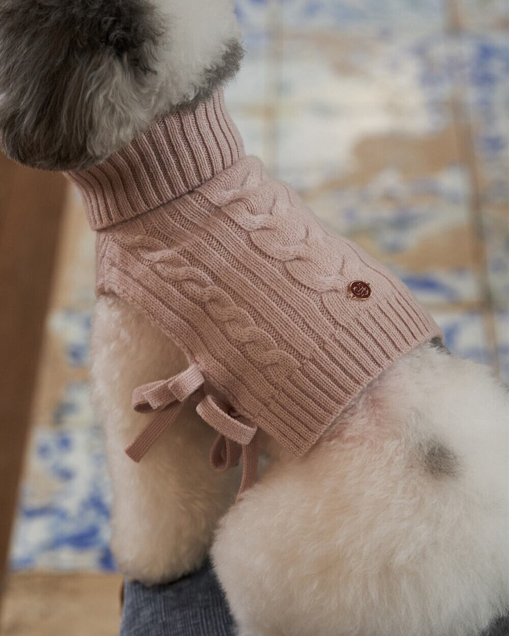 【予約】[ heritagegeppetto] 100% Cashmere Selkie cable roll neck vest(Sandy)
