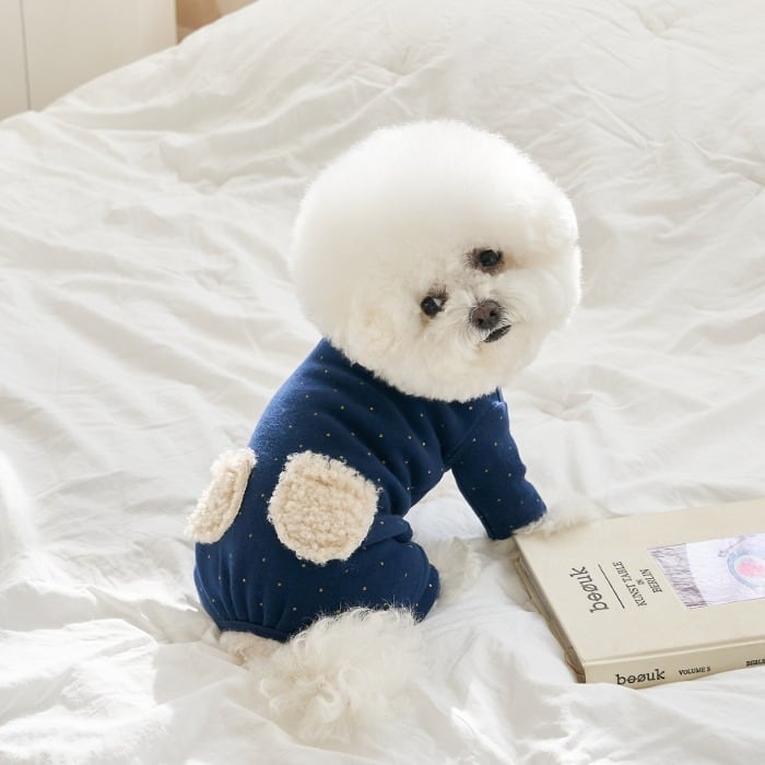 【予約】[EOMUKMARKET]ネイビー/ドットポケットオールインワン