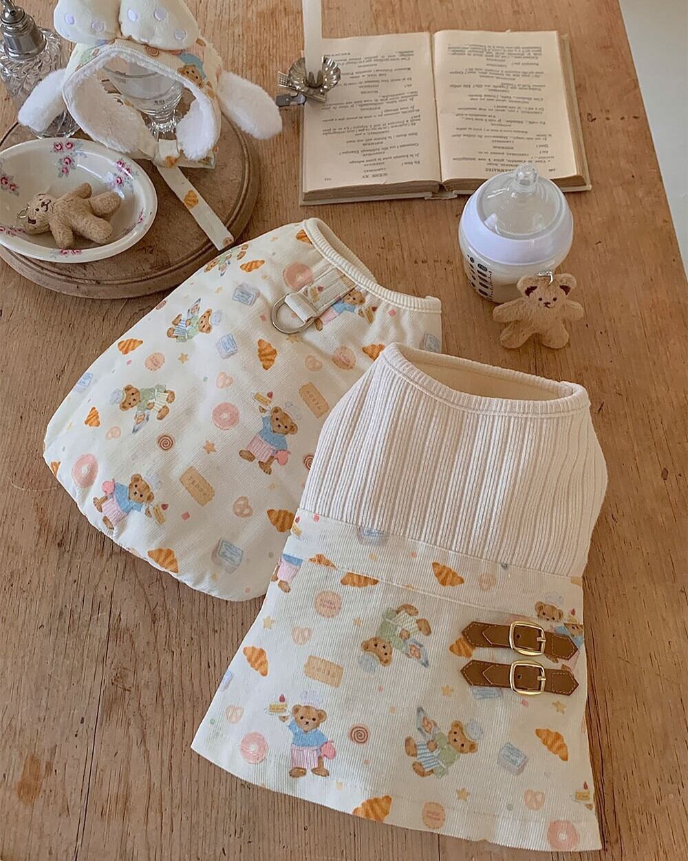 ブラウンカラーのバックル装飾でスカートにポイントを与えました。
