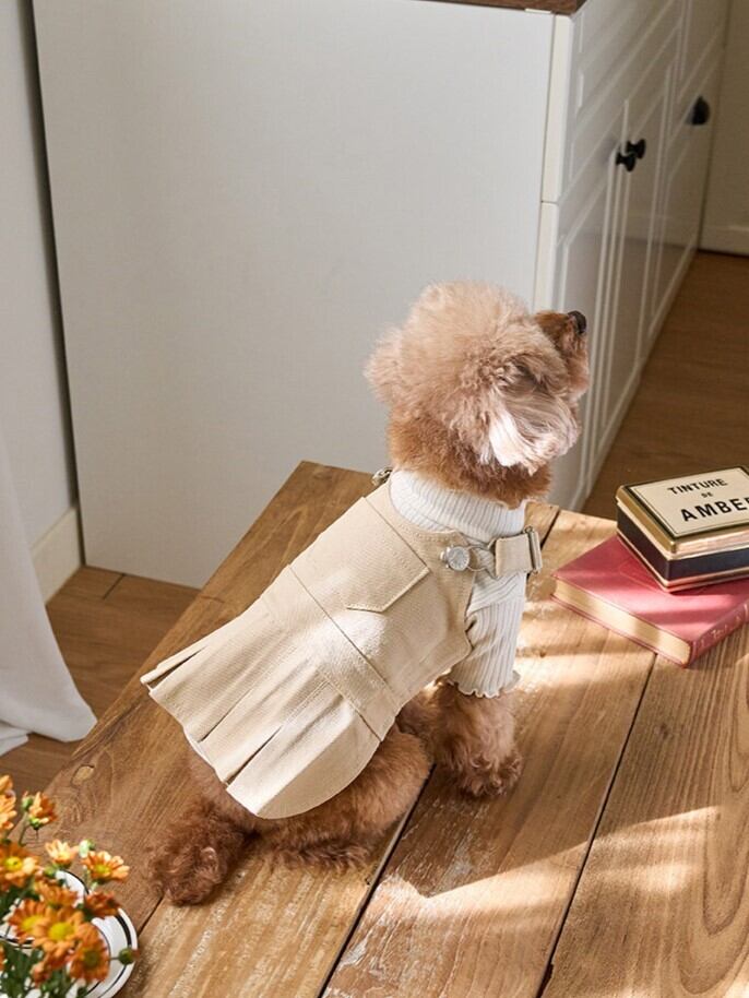 プリーツディテールが可愛らしいサスペンダーワンピース