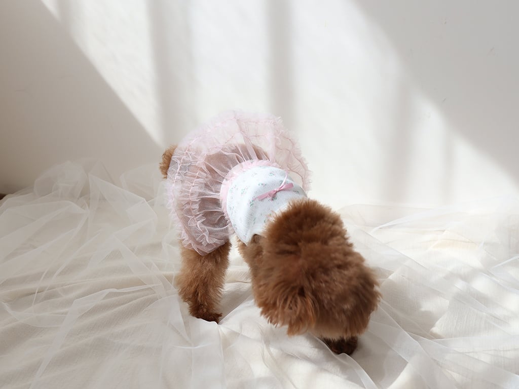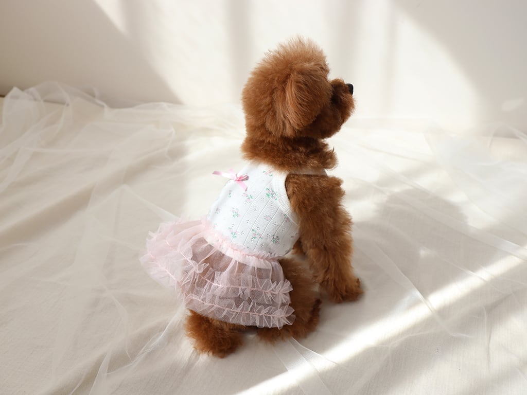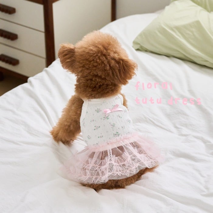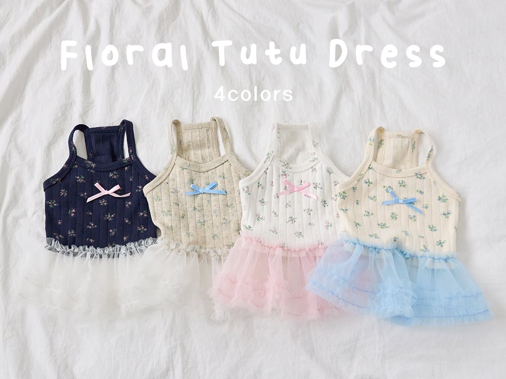 【予約】[EOMUKMARKET] (ホワイト+ベビーピンクチュチュ)フローラルチューチュワンピース