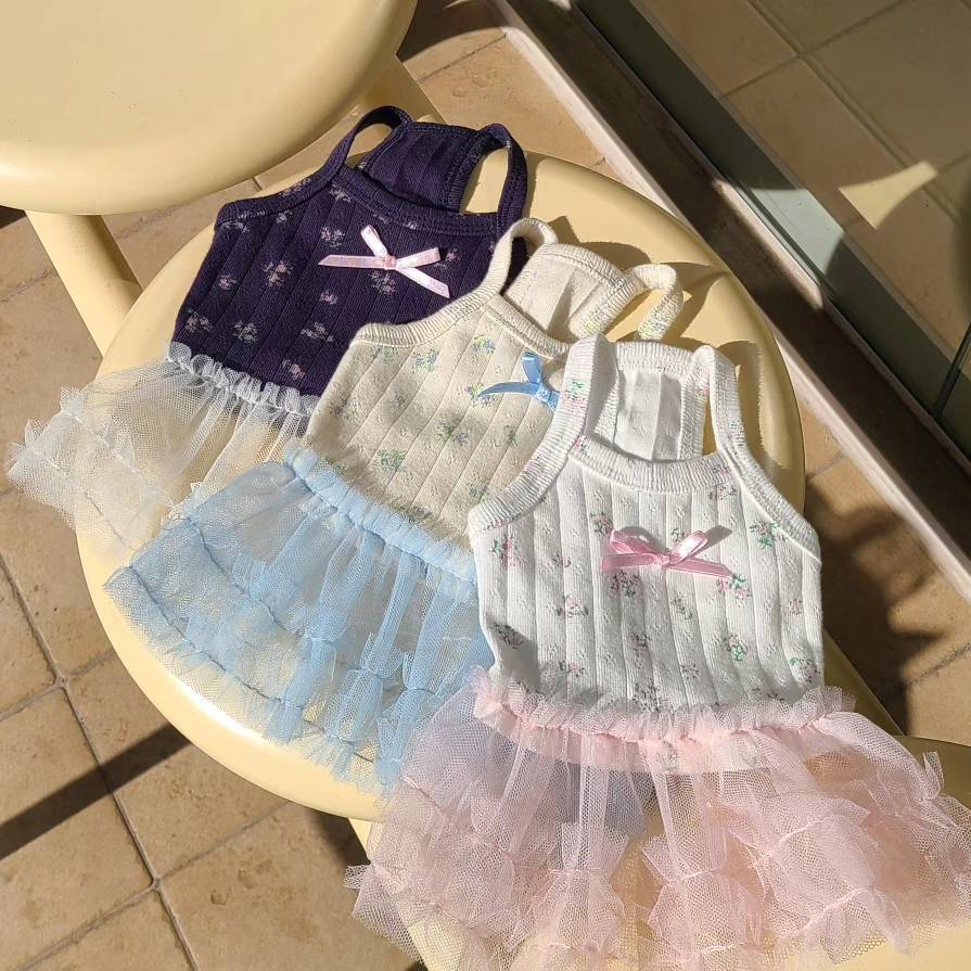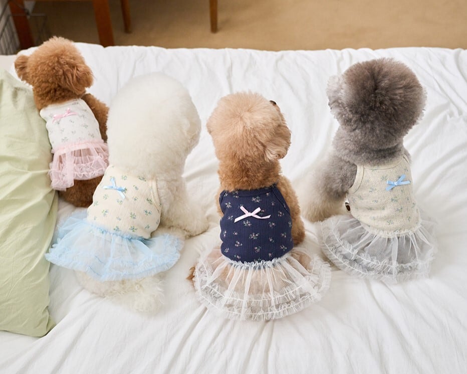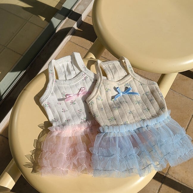 【予約】[EOMUKMARKET] (オートミール+スカイブルーチュチュ)フローラルチューチュワンピース