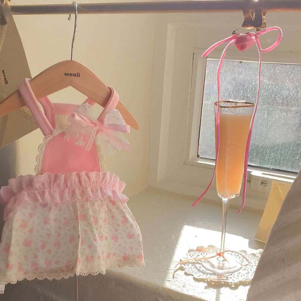 ラブリーで可愛い春らしいエプロン型のワンピース!