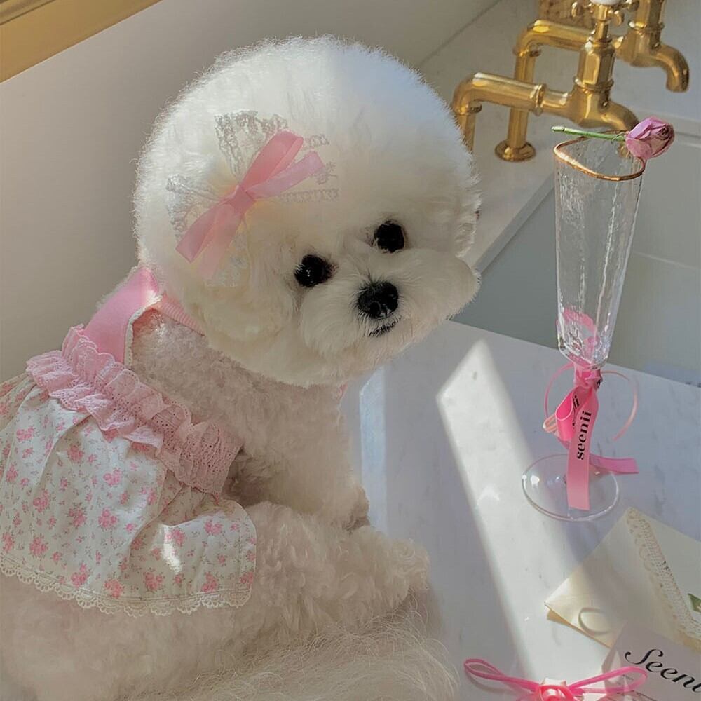 ラブリーで可愛い春らしいエプロン型のワンピース!