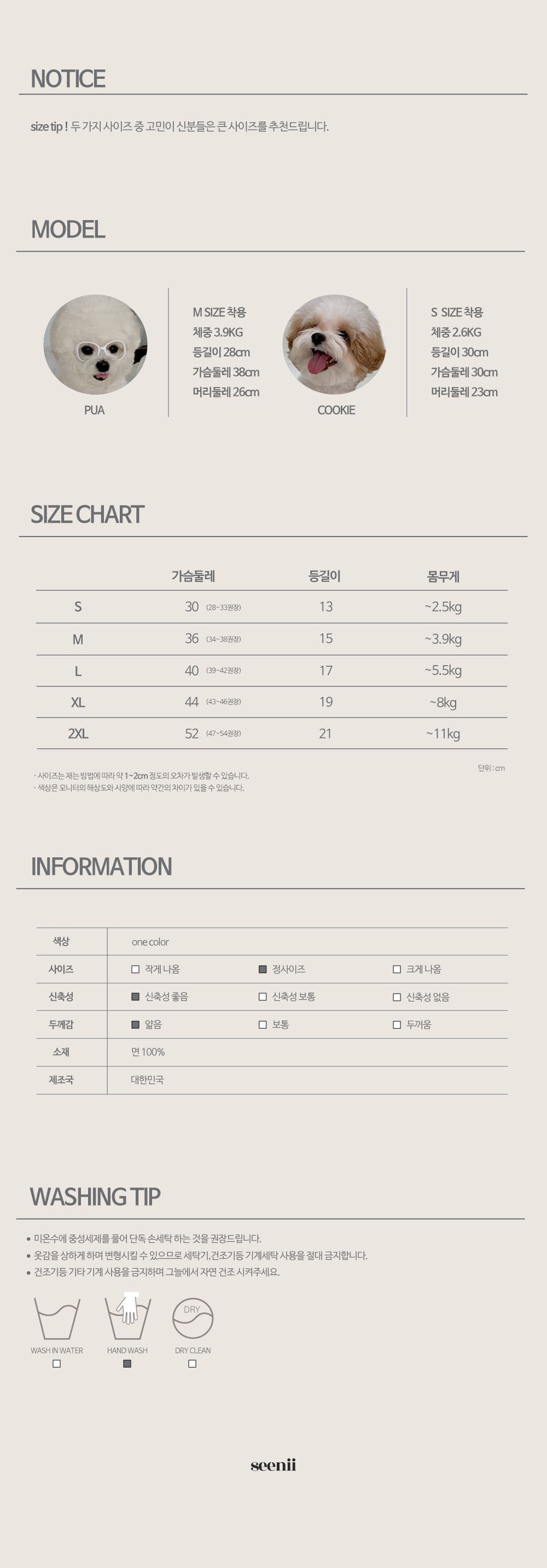 2XL 胸囲/52 (47~54권장) 着丈/21 推奨体重/~ 11kg