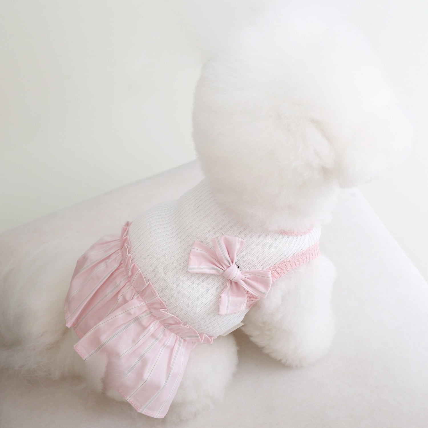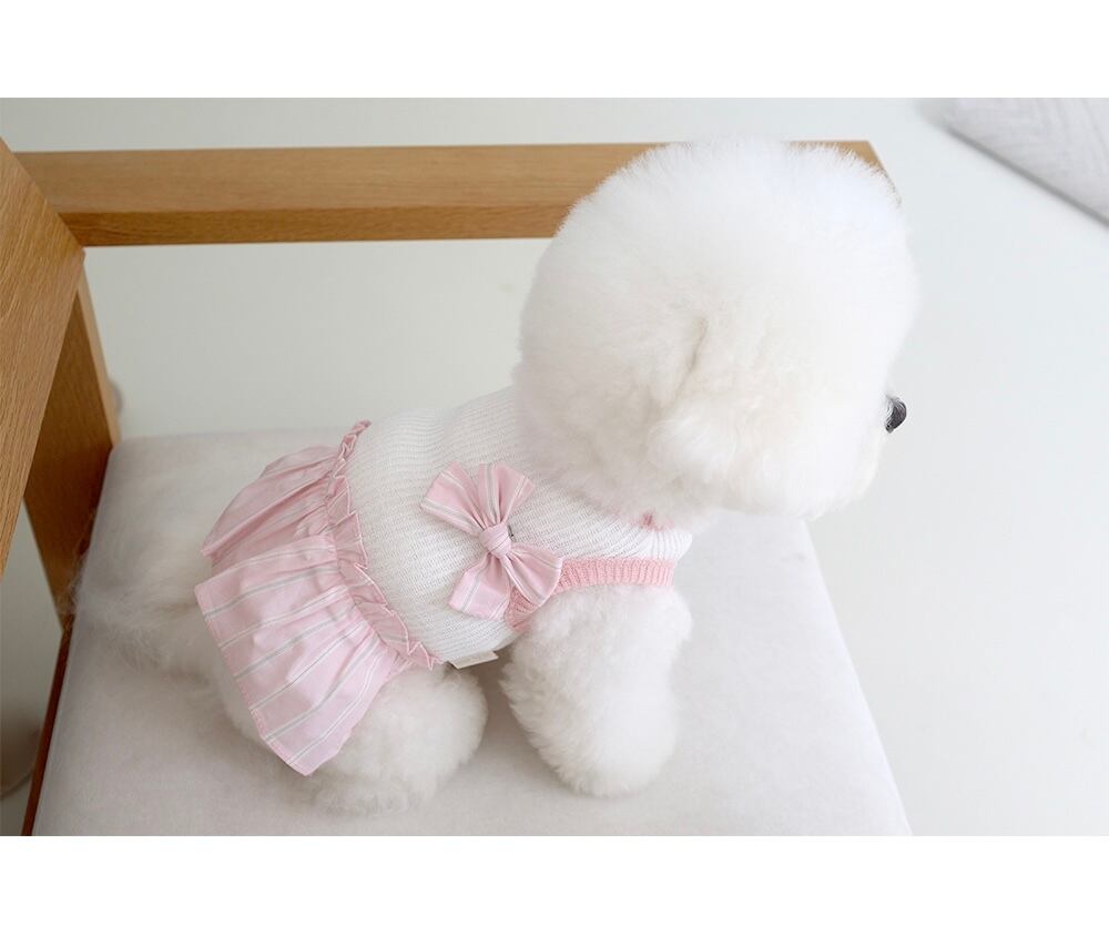 体重3.2kg、胸囲36cm、着丈26cm、首回り24cm:Mサイズ着用