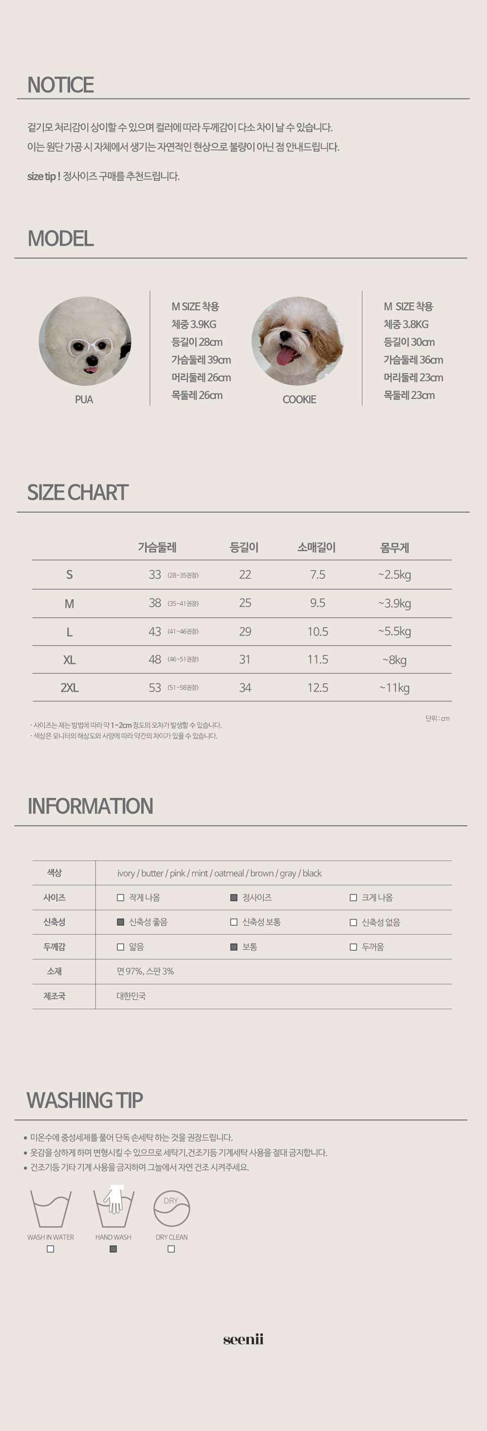 M 着丈/25cm 胸囲/38 (35~41推奨) 袖丈/9.5cm 推奨体重/~3.9kg