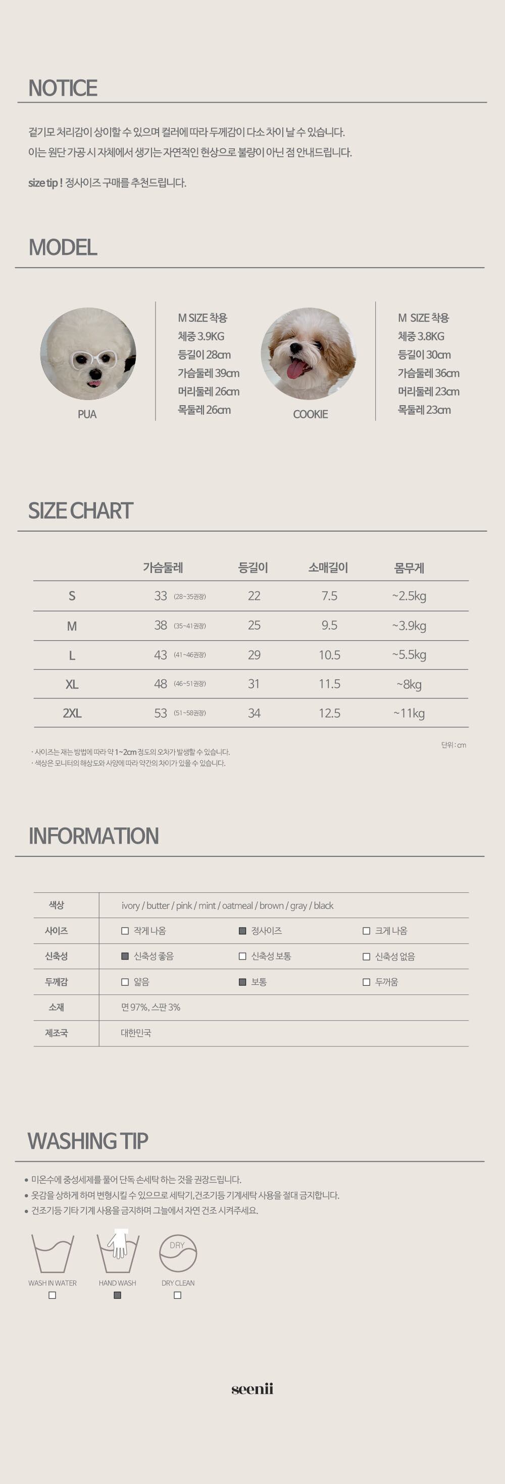 XL 着丈/31cm 胸囲/48(46~51推奨)袖丈/115cm 推奨体重/~8kg