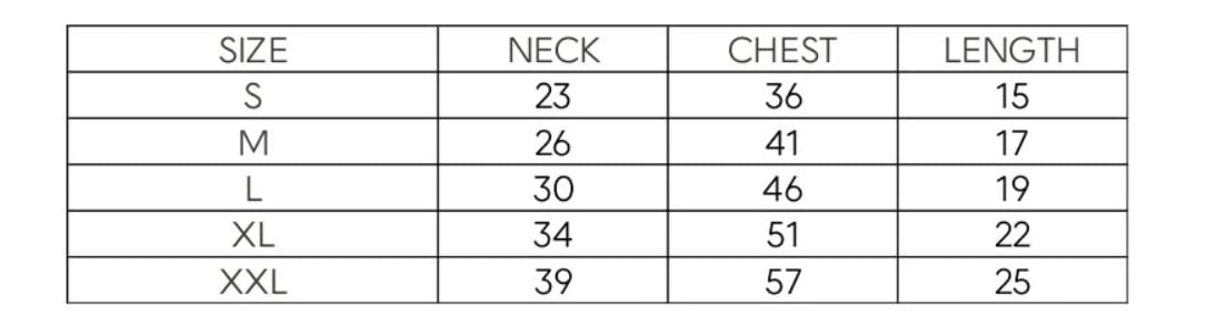XXL 首回り/39cm 胸囲/ 57cm 着丈/25cm