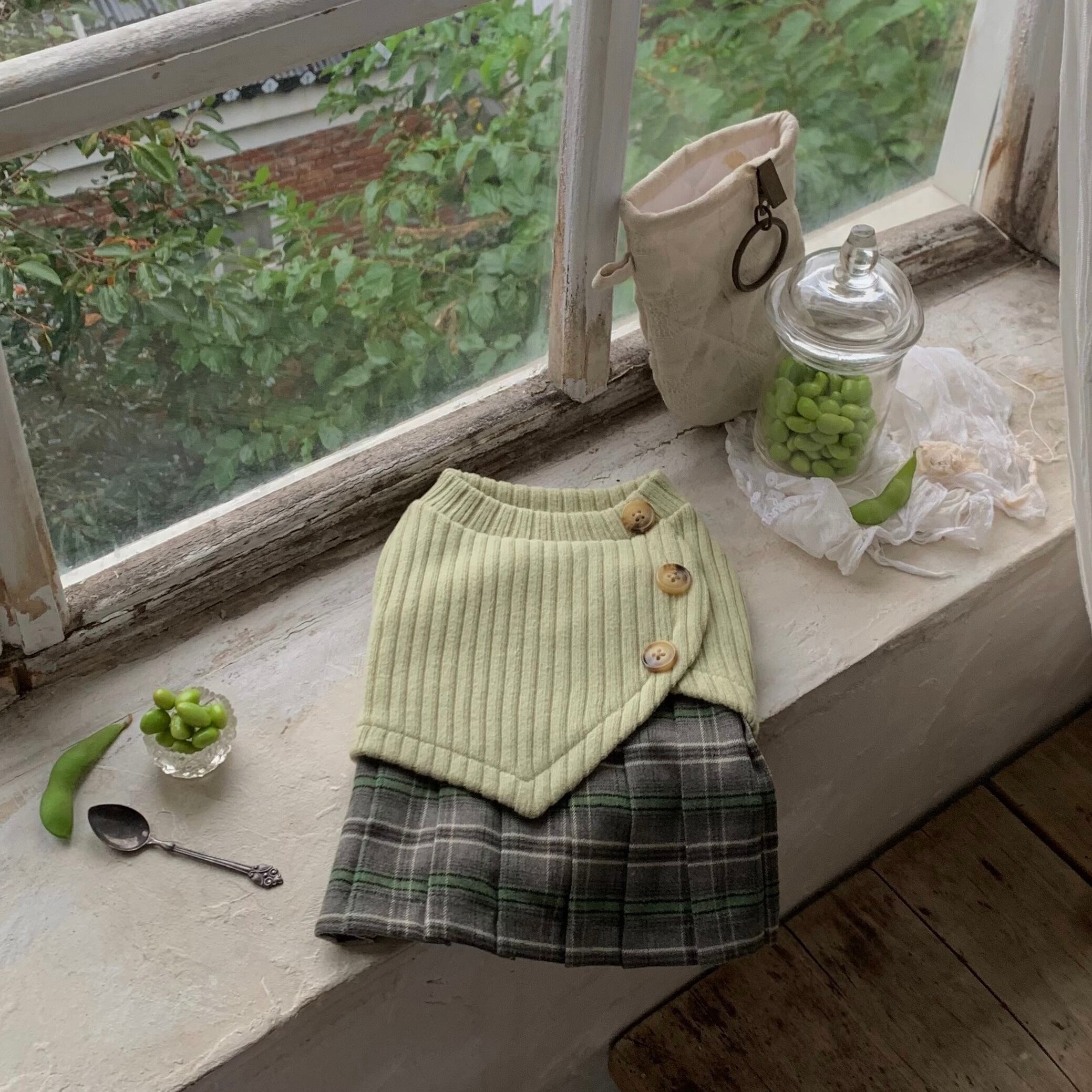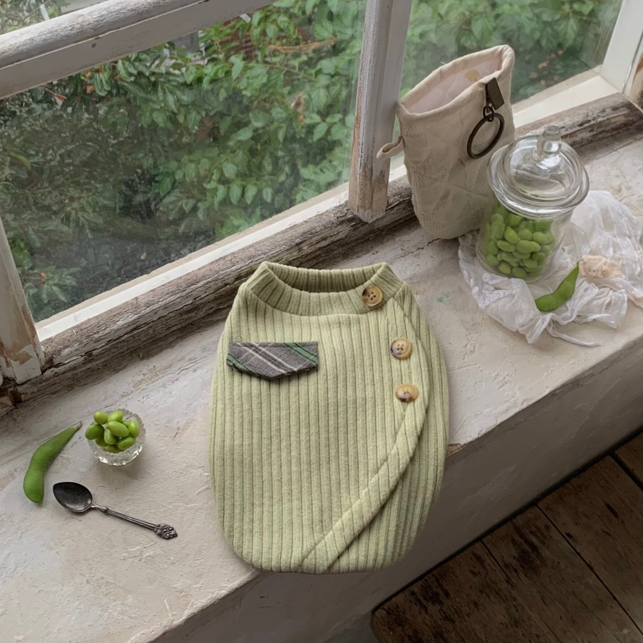 丸みを帯びたエンドウ豆型のボタンディテール