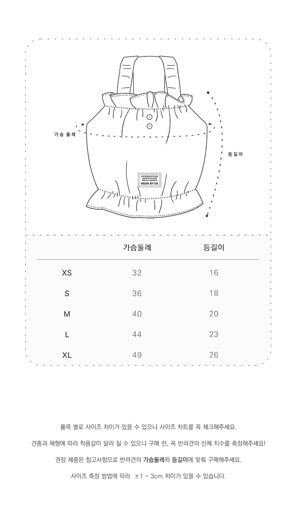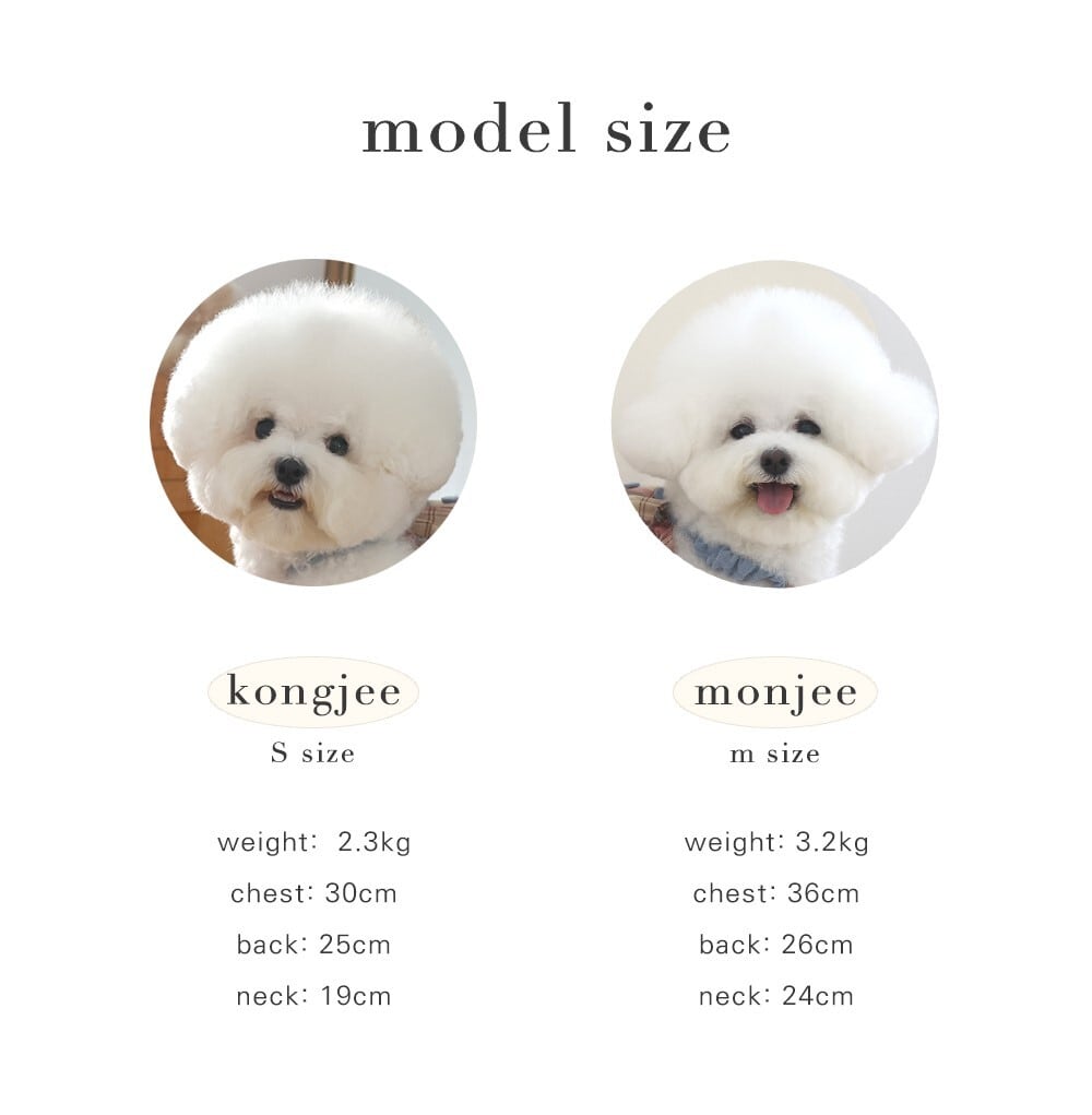 ※子犬の胸囲 + 2~4cm余裕を持って選択するときれいで快適に着用することができます。