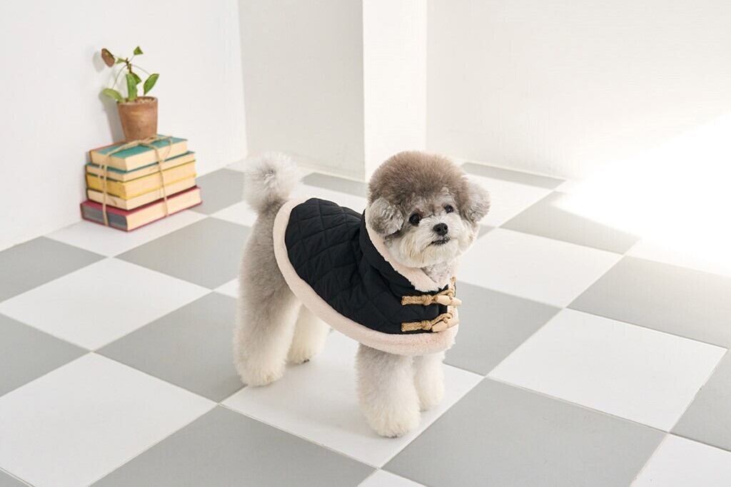 【予約】[EOMUKMARKET] キルティングパディングフードポンチョ(ブラック)